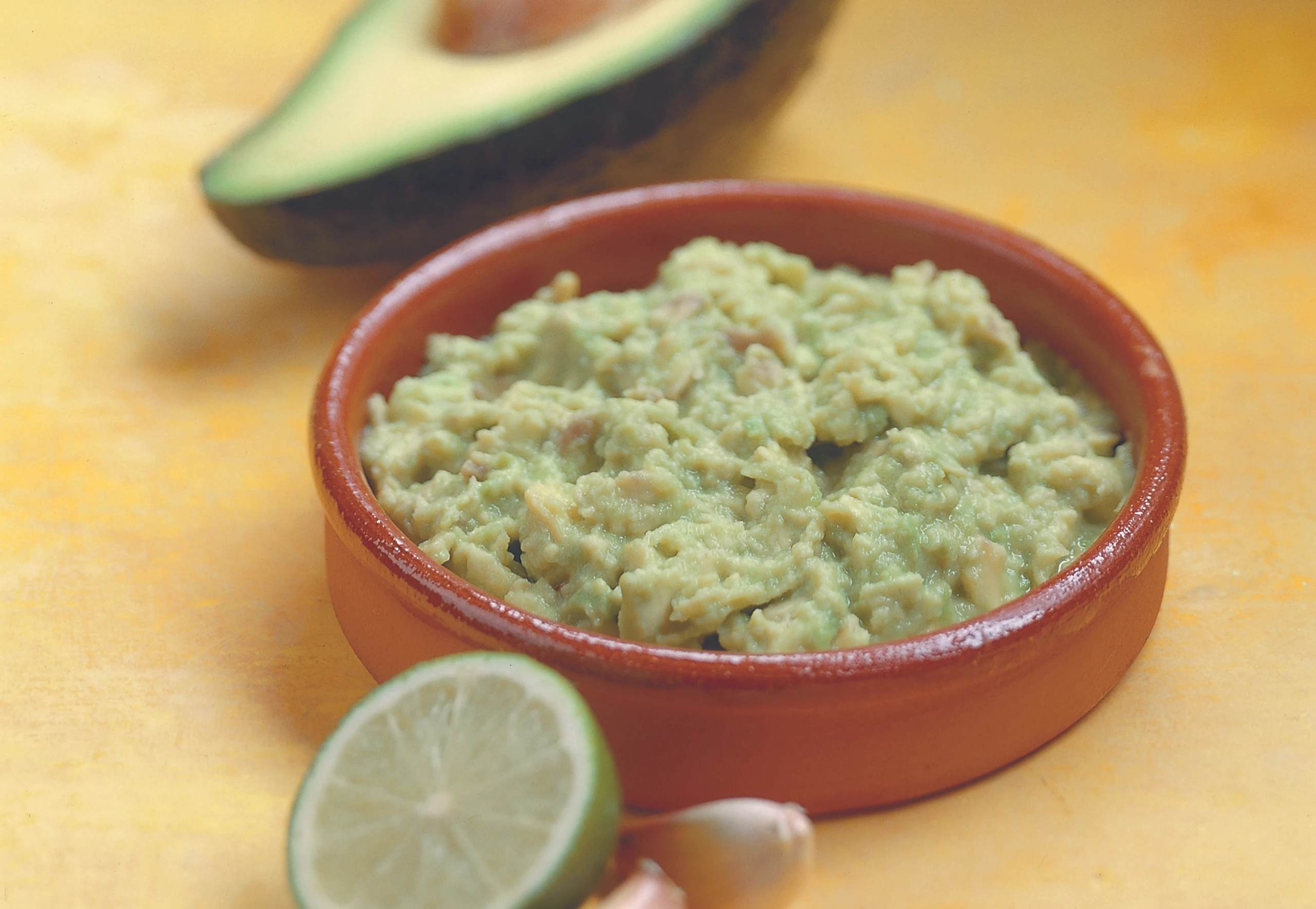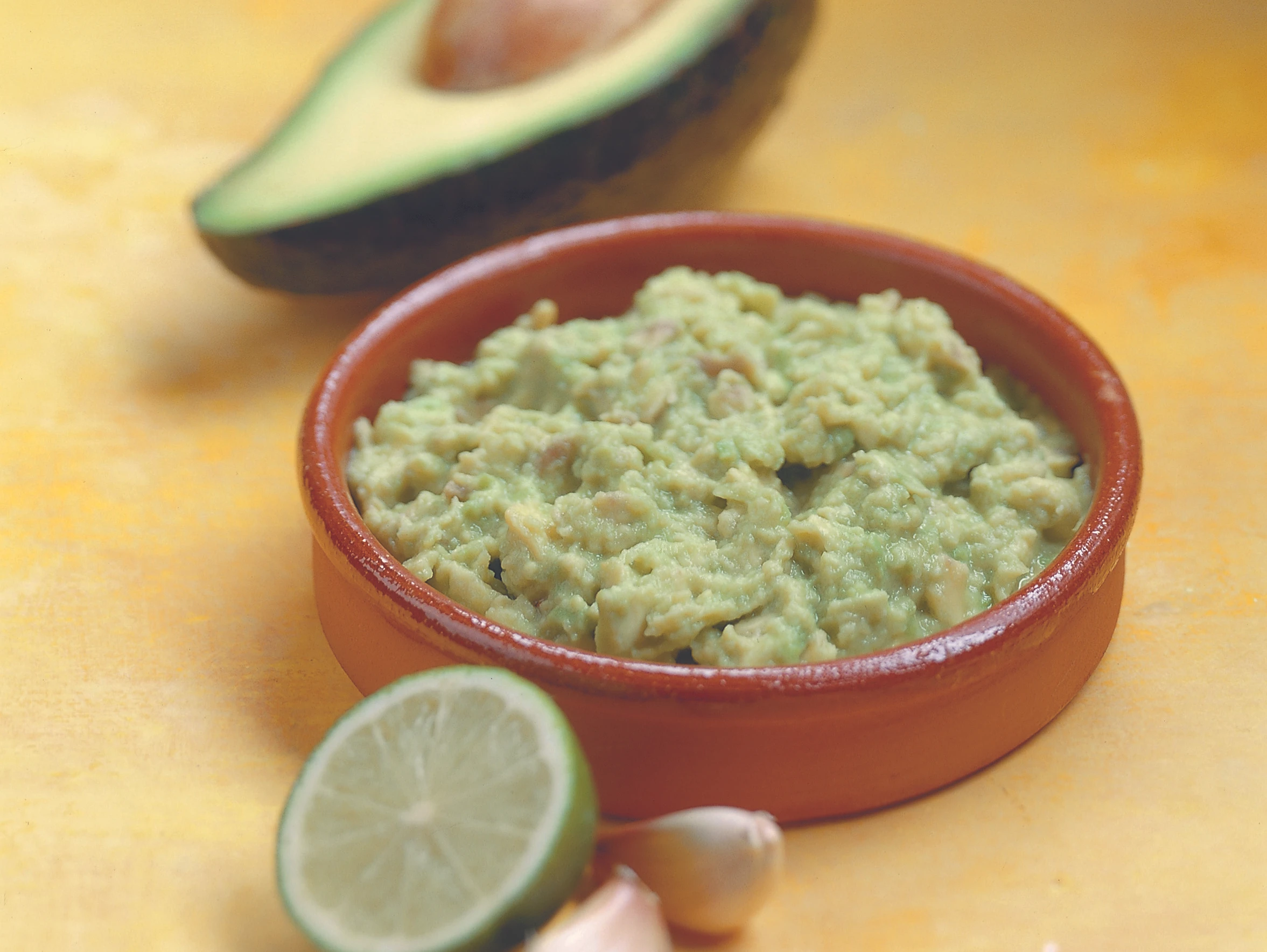Mit einer Gabel fein zerdrücken, mit gehacktem Knoblauch und Limettesaft vermischen, mit Salz und Chili würzen.