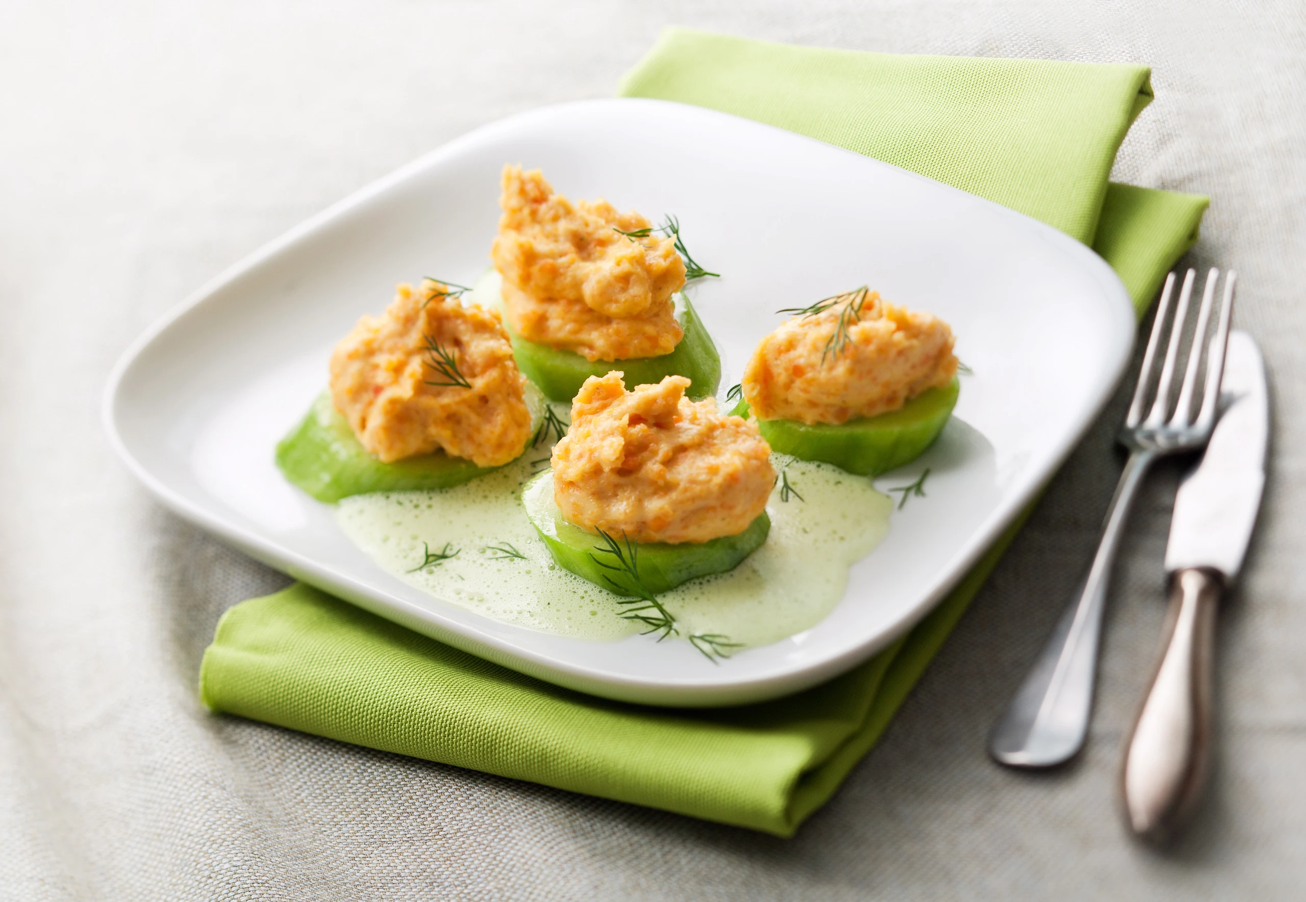 Gurkenscheiben mit Linsenpüree