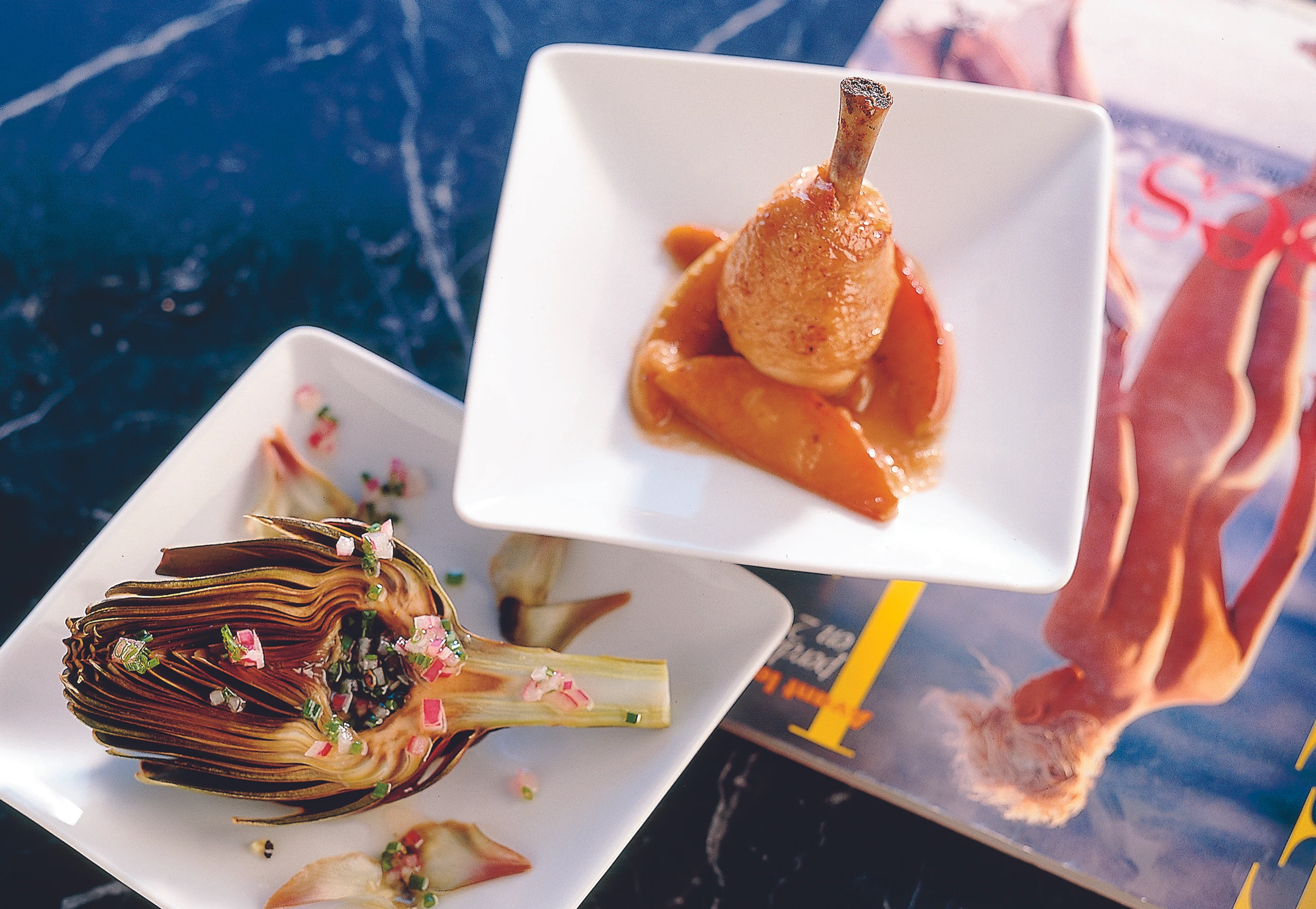 Hühnerhaxerl auf Calvados-Äpfeln