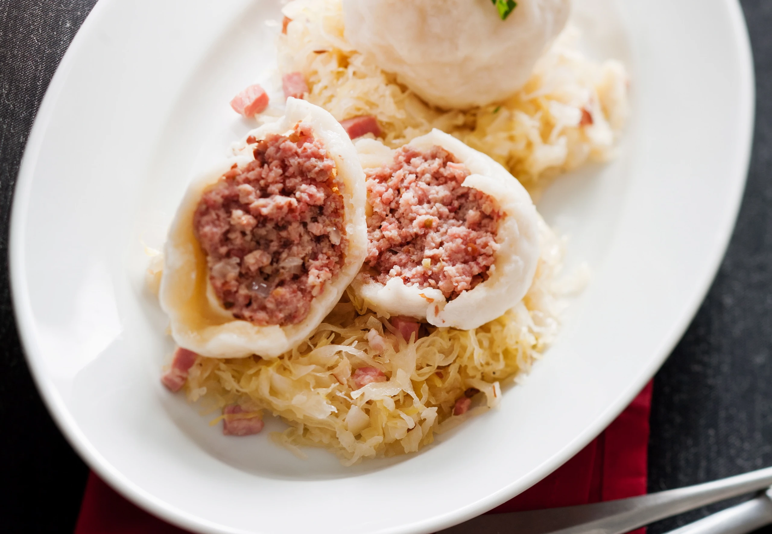 Salzwasser aufkochen, Knödel einlegen und ca. 12 Minuten köcheln. Herausheben, abtropfen lassen, anrichten und eventuell mit Petersilie garnieren. Als Beilage passt Sauerkraut mit Speck.