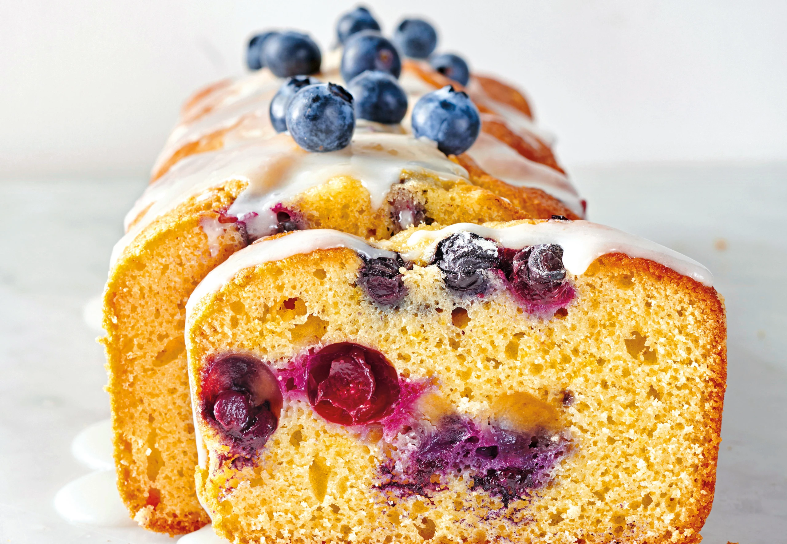 Für die Glasur Staubzucker und Zitronensaft glatt rühren. Kuchen mit Glasur beträufeln und mit den Heidelbeeren garnieren.