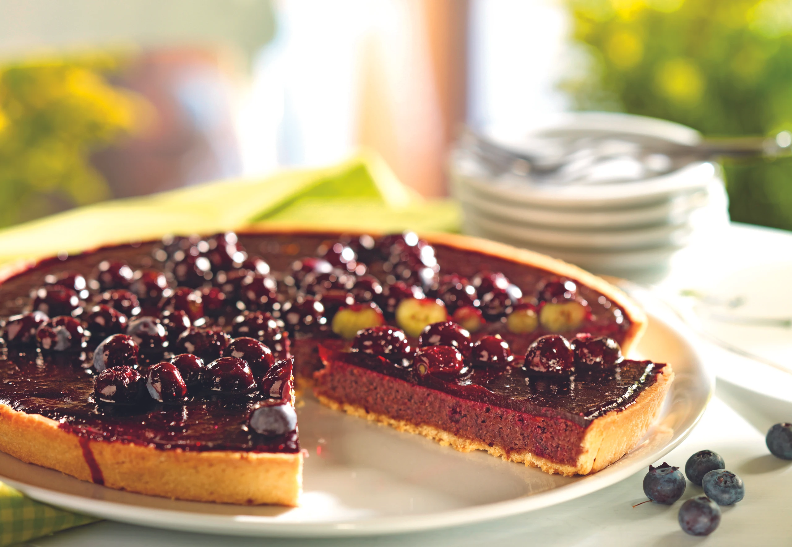 - Für das Gelee Gelatine in kaltem Wasser einweichen. Wasser mit 100 g Heidelbeermarmelade und 50 g Kristallzucker verrühren und aufkochen. Gelatine ausdrücken und darin auflösen. Heidelbeeren einrühren und kurz ziehen lassen. Gelee auf der Fülle verteilen, Tarte für ca. 4 Stunden kühl stellen.