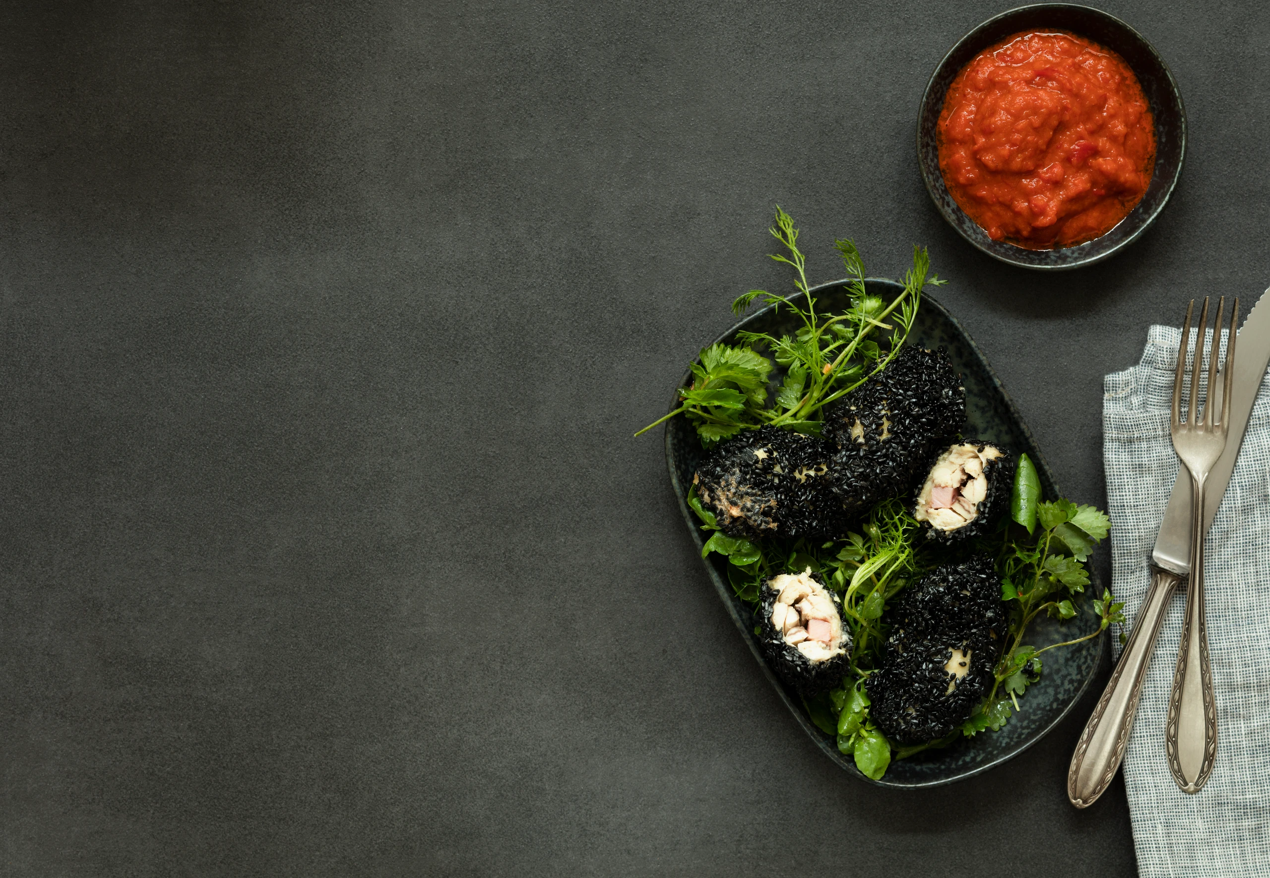 Hendlflügerl mit Schinkenfülle im Sesammantel