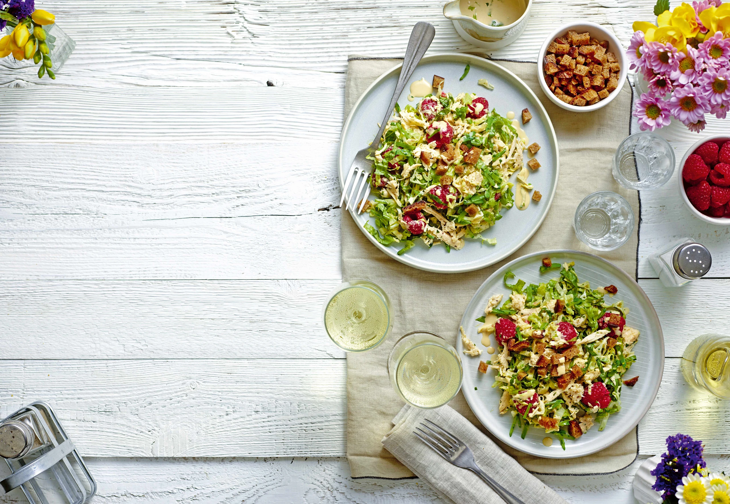 Hendlsalat mit Kaiserschoten und Himbeeren