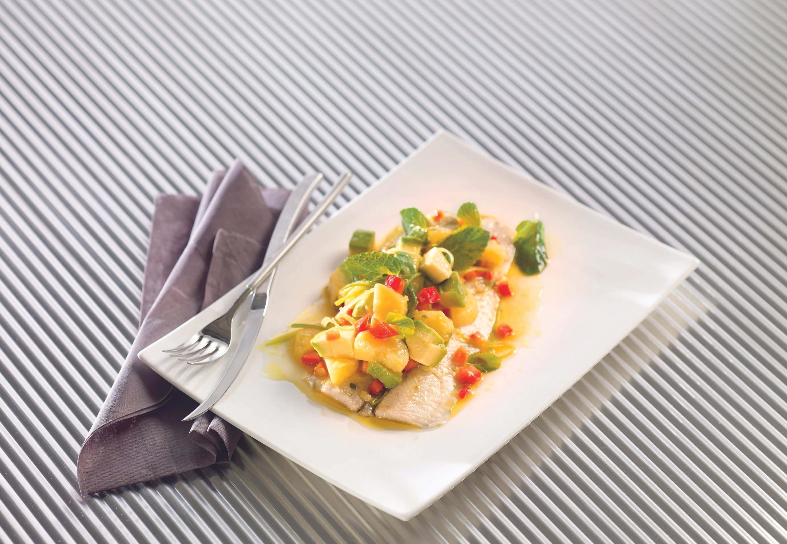 Zitronensaft, Olivenöl, Salz und Pfeffer verrühren, mit Erdäpfeln, Paprika, Avocado, Lauch und Minzeblättern vermischen, 10 Minuten ziehen lassen.