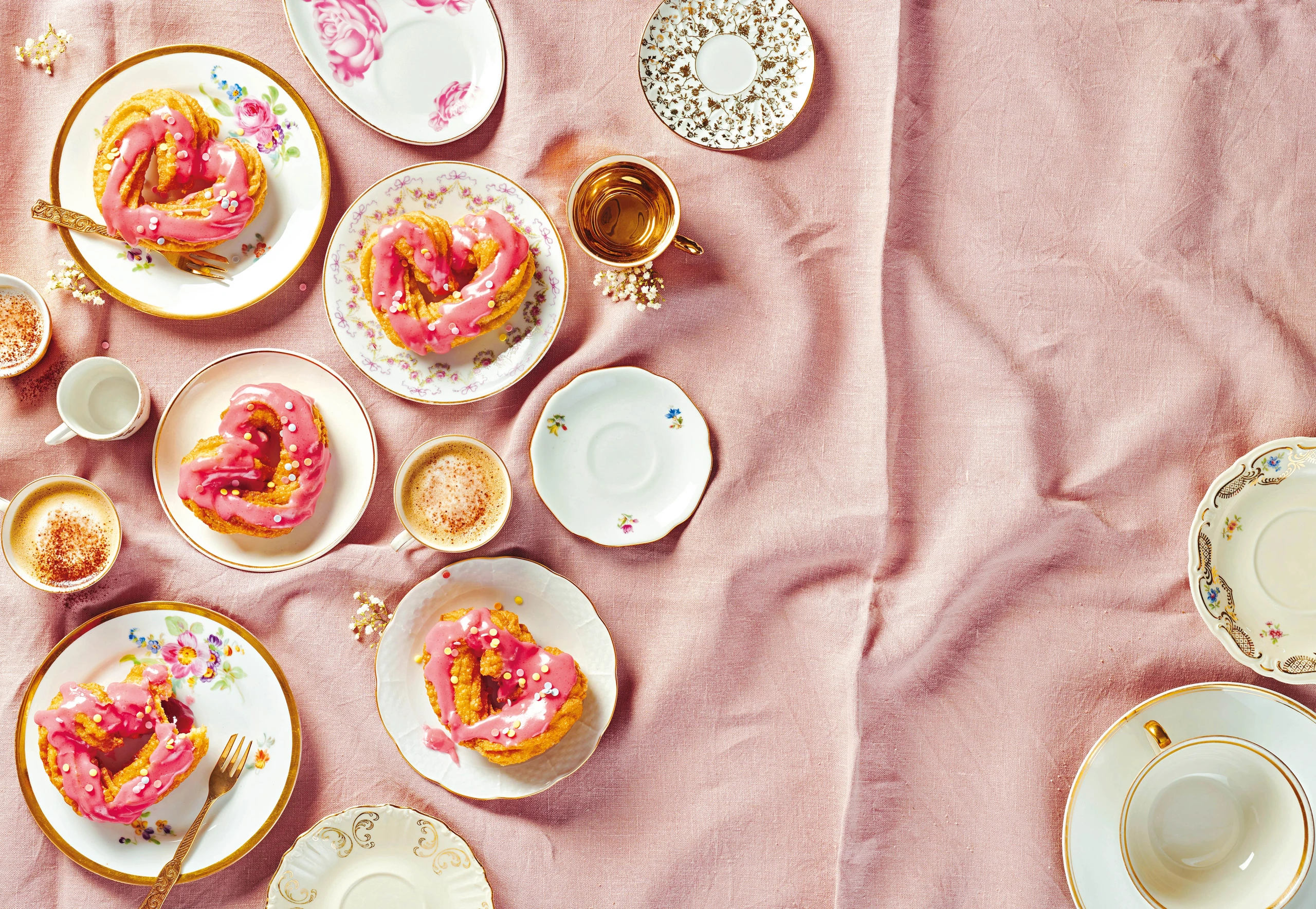 Öl in einem weiten Topf auf 170°C erhitzen. Brandteigherzen vorsichtig in das Öl gleiten lassen, Backpapier abziehen. Herzen beidseitig goldbraun backen, herausnehmen und auf Küchenpapier abtropfen lassen.