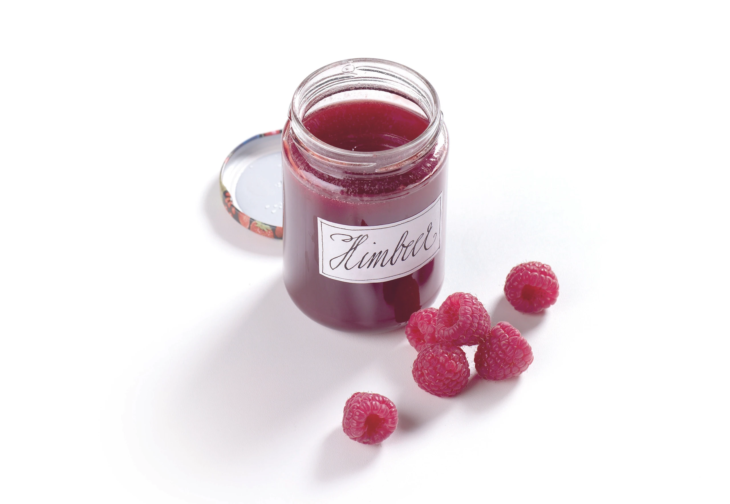 Gläser vorbereiten. Himbeeren verlesen, mit 350 ml Wasser aufkochen und 20 Minuten köcheln. Zitronensaft einrühren und die Masse nochmals aufkochen.