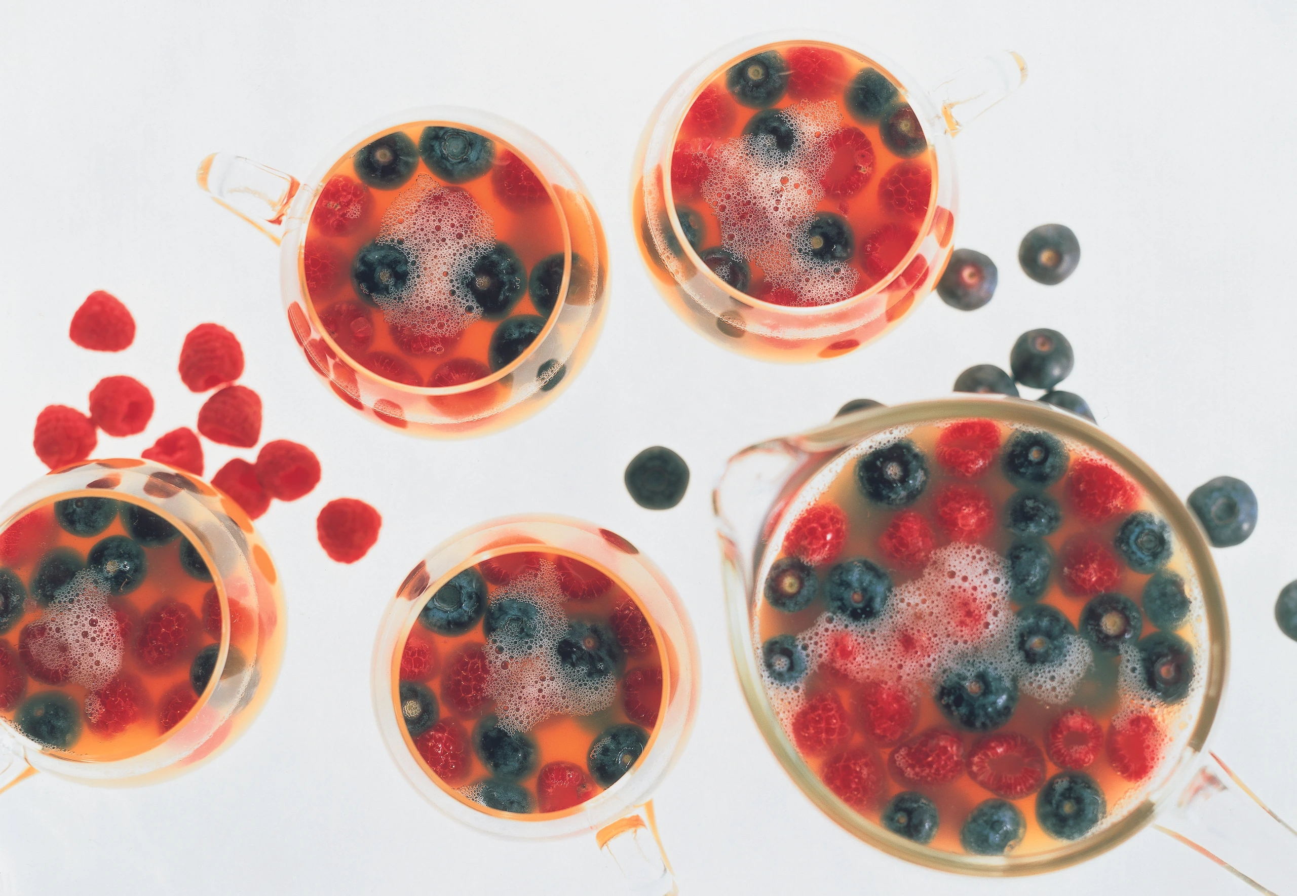Bowle vor dem Servieren mit Sekt aufgießen und behutsam durchmischen.