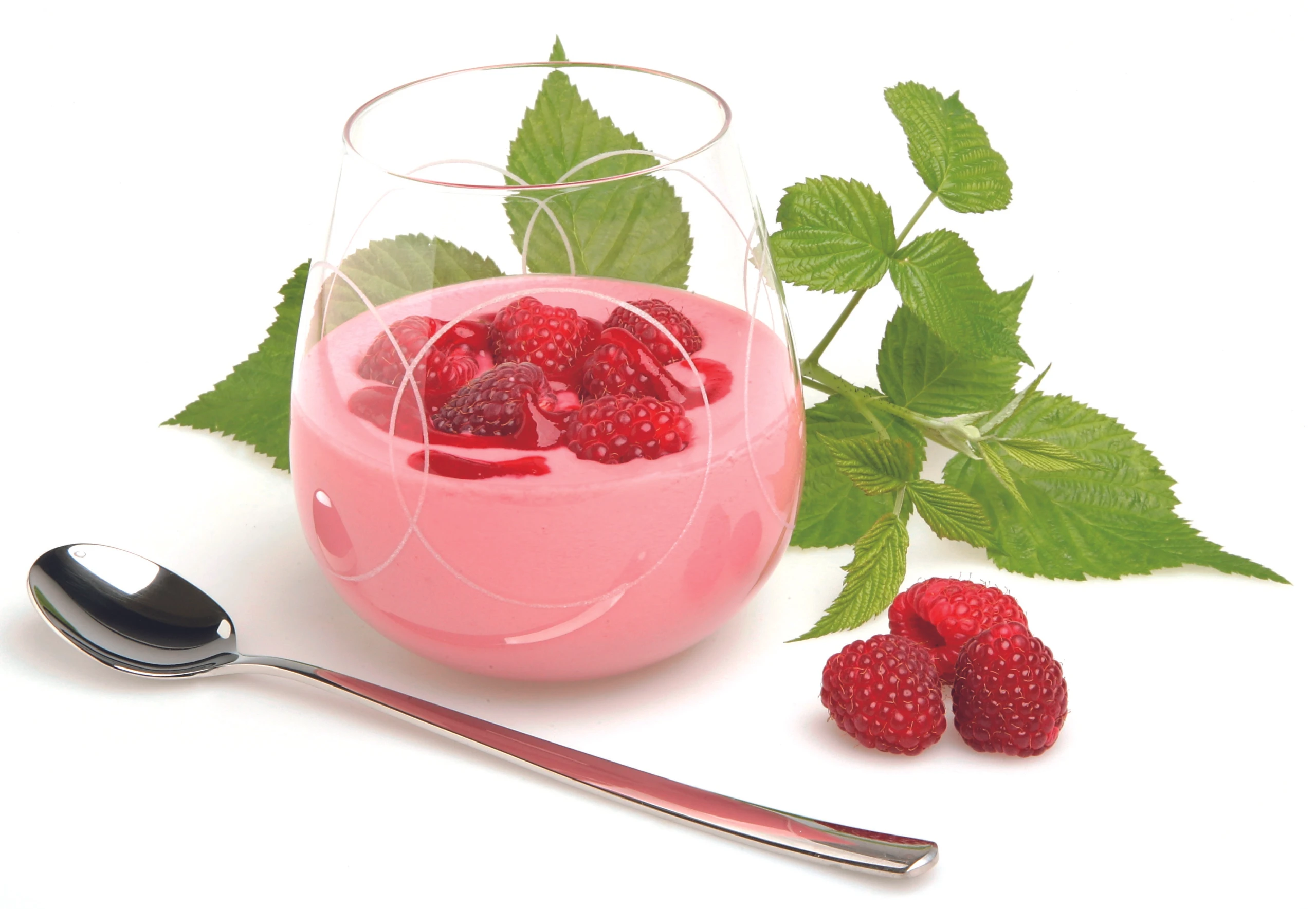 Himbeercreme in Gläser füllen, mit Himbeeren und restlichem Püree garnieren.