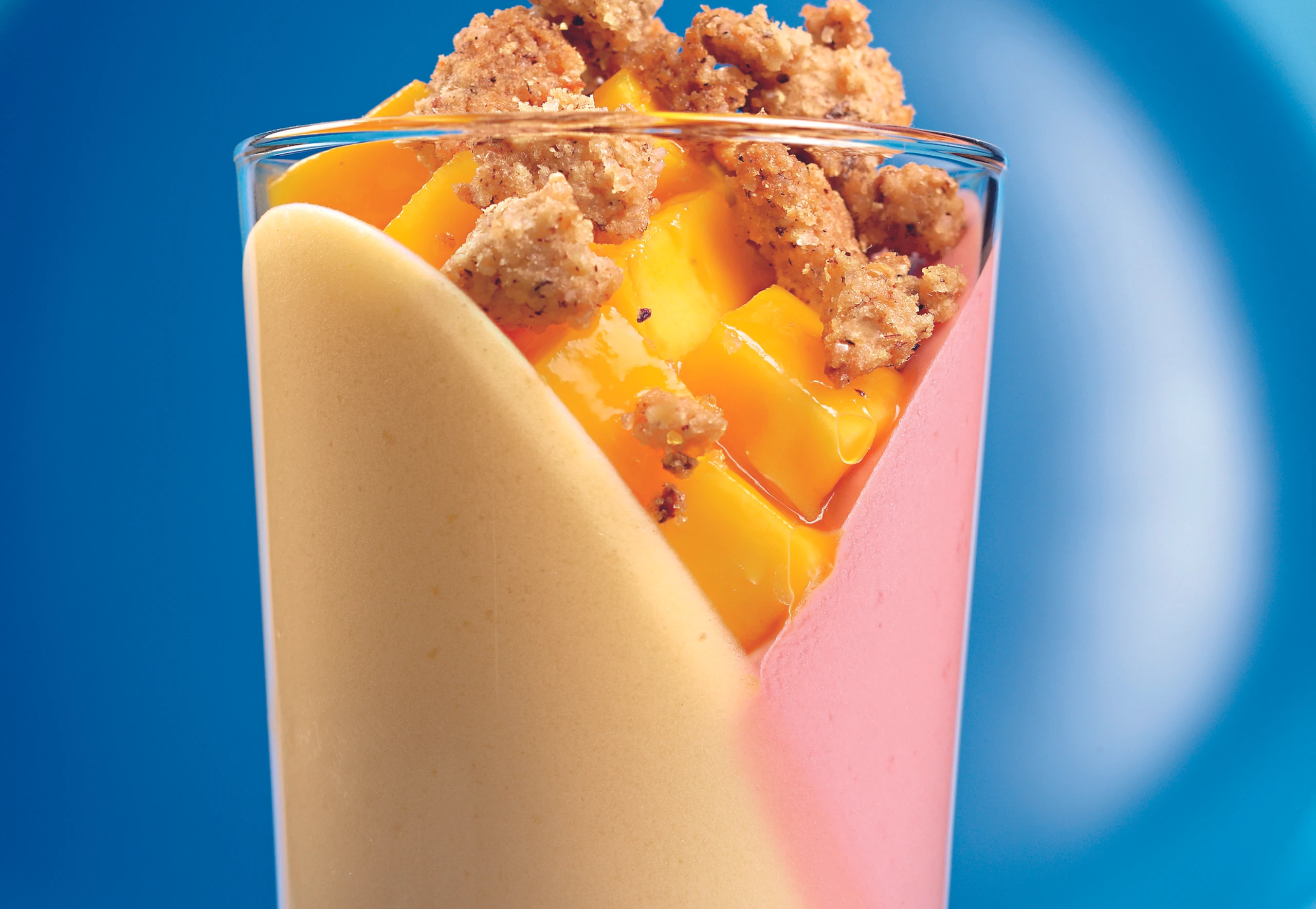 Himbeer-Mangocreme mit Mandel-Crumble