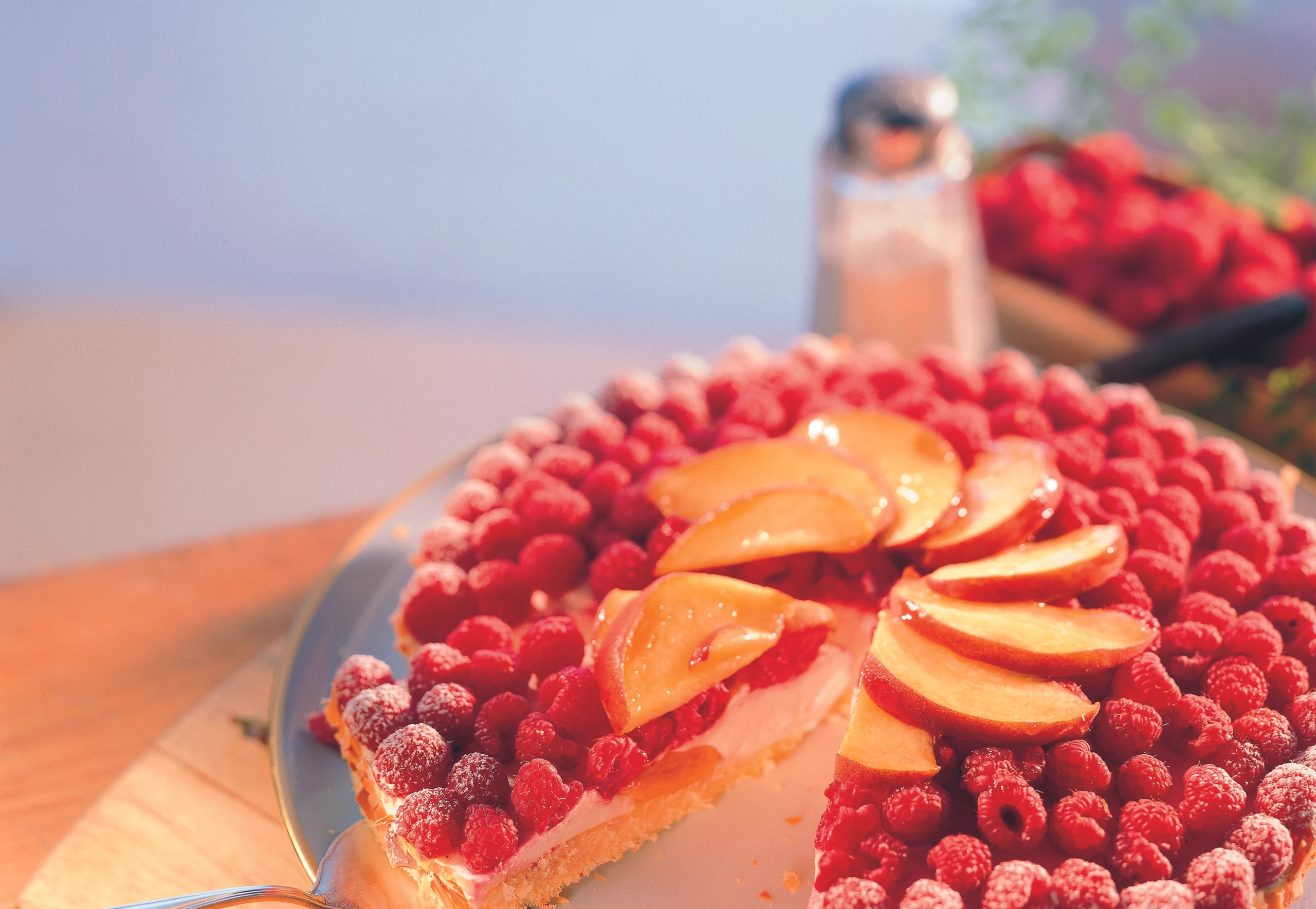 Himbeer-Pfirsich-Torte mit Weinschaumcreme