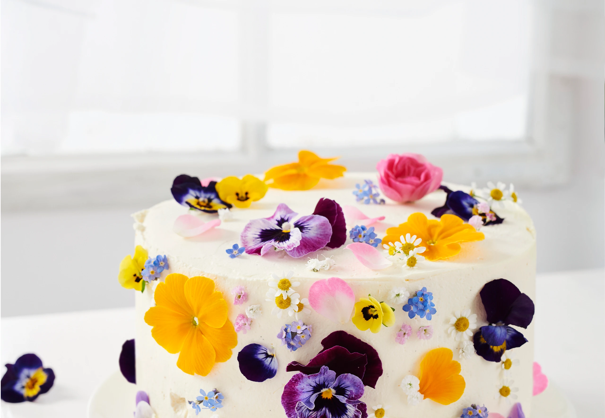 - Für die Creme alle Zutaten vermixen. 3 Böden mit wenig Creme bestreichen und übereinandersetzen. Vierten Boden darauf legen und leicht andrücken. Torte rundum mit der restlichen Creme einstreichen und im Kühlschrank mind. 3 Stunden durchziehen lassen. Mit den Blüten verzieren.