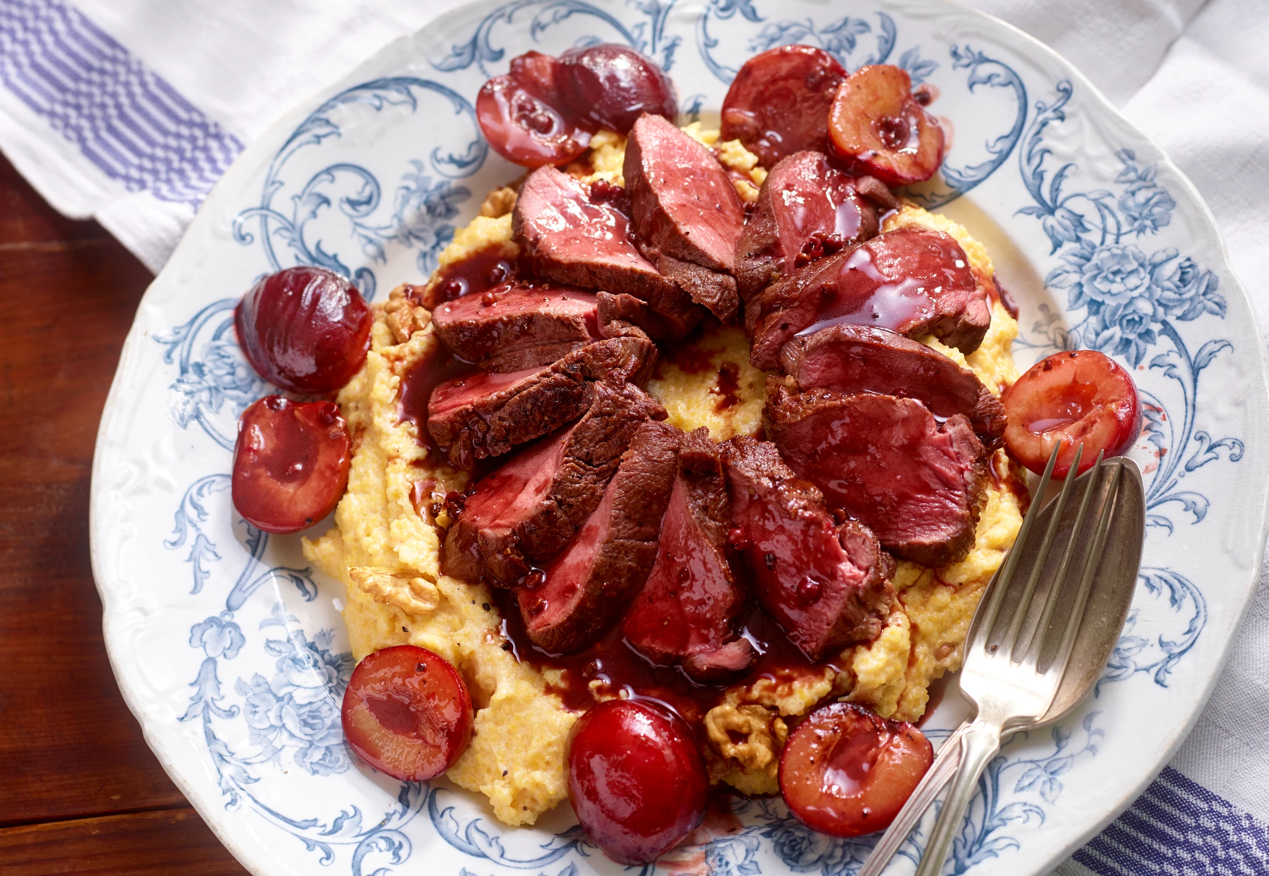 Hirschfilet mit Zwetschkensauce und Walnuss-Polenta