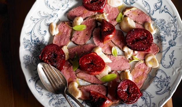 Hirschrücken mit Selleriecreme und Cassisfeigen