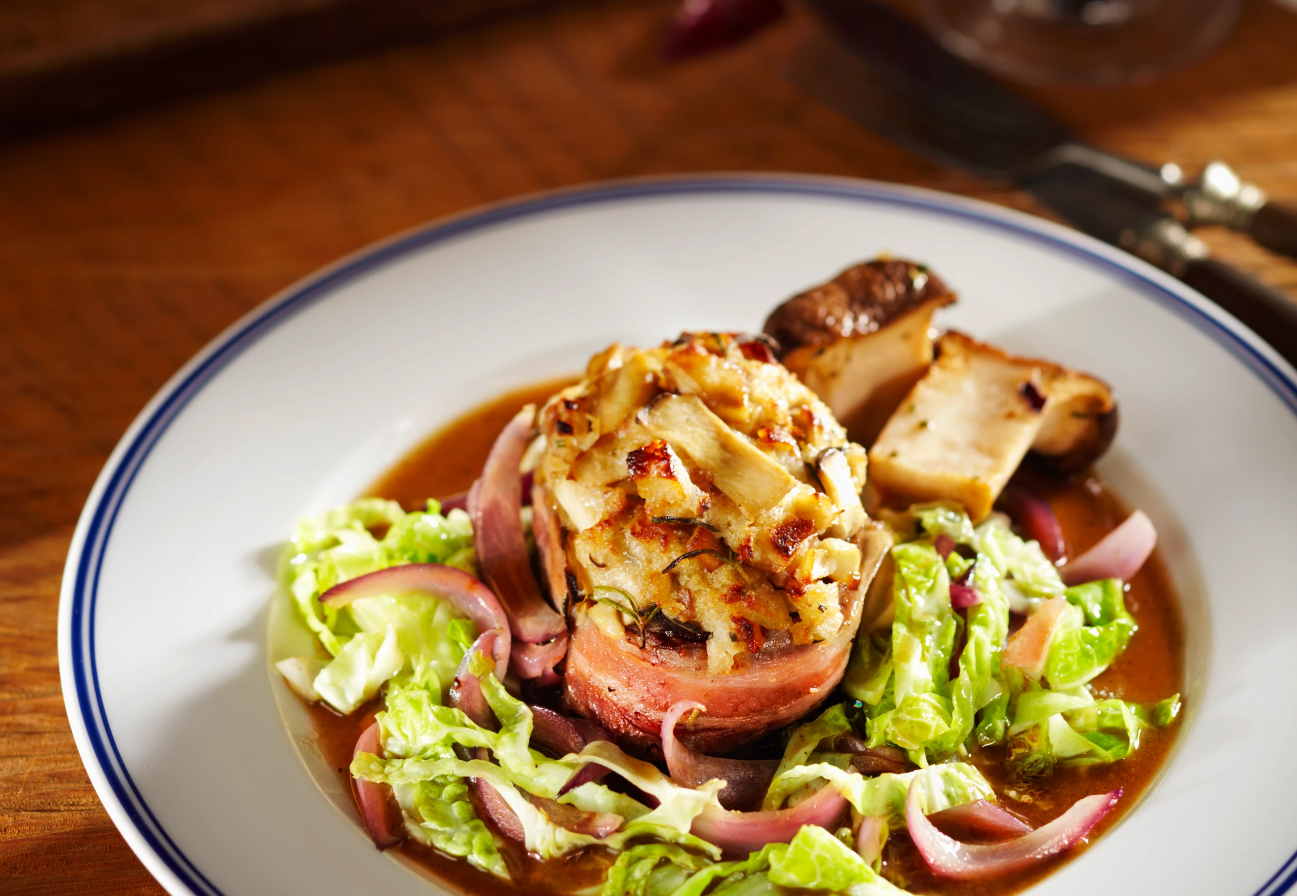 Hirschsteak mit Steinpilzkruste und Kohl