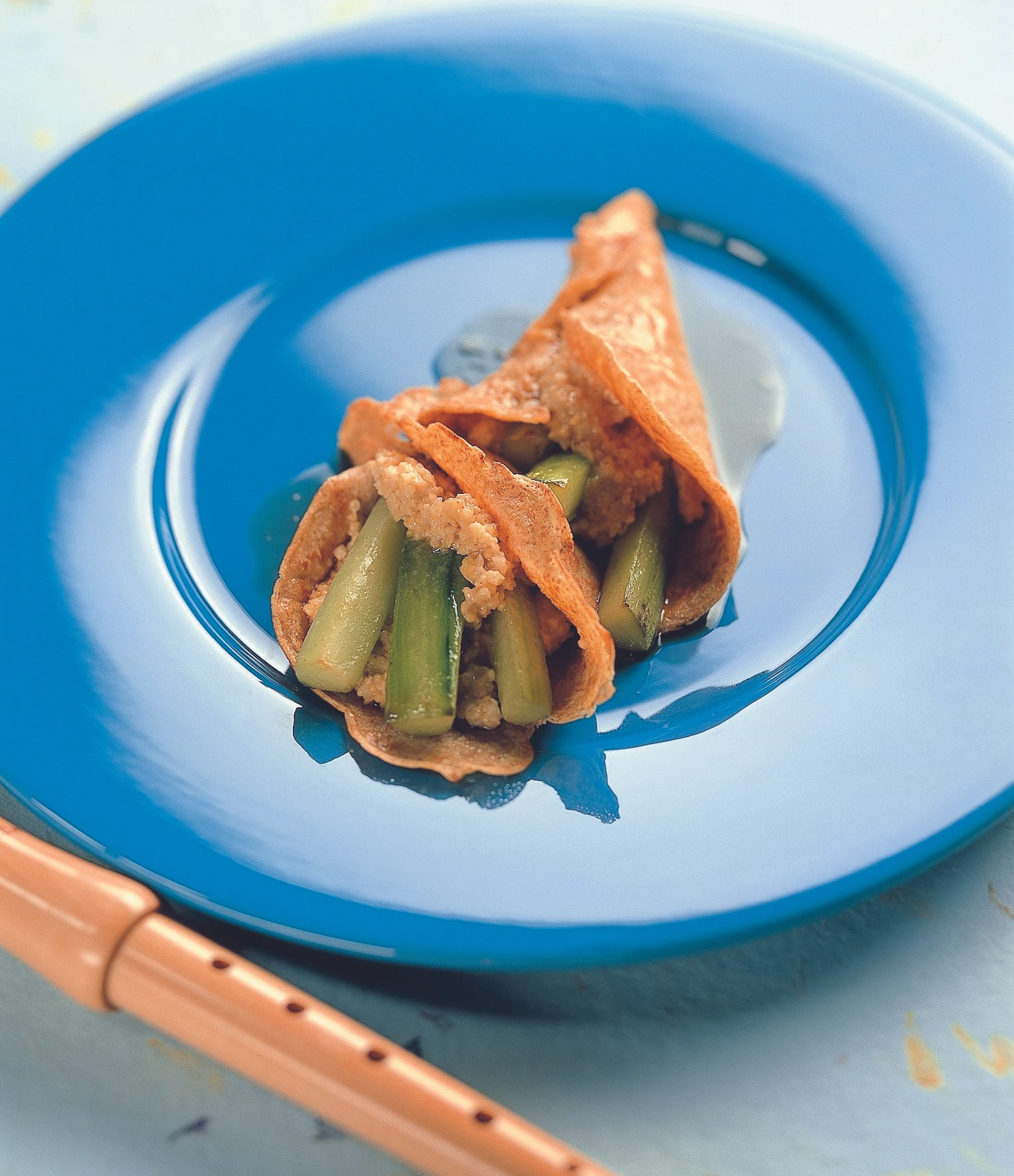 Hirse-Vollkornpalatschinken mit Gurkengemüse