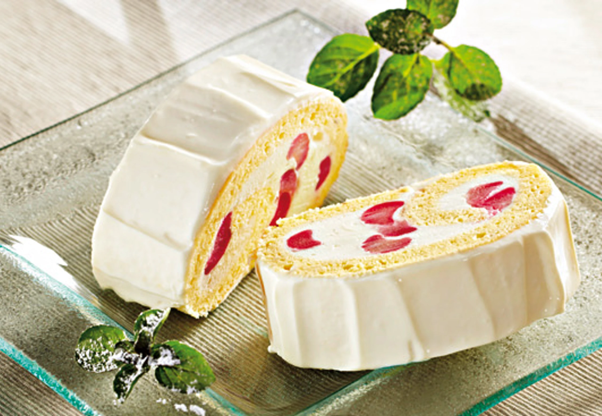 - Biskuit zu zwei Dritteln mit der Creme bestreichen, mit Rhabarberstücken belegen. Roulade einrollen und für 4 Stunden kühl stellen.