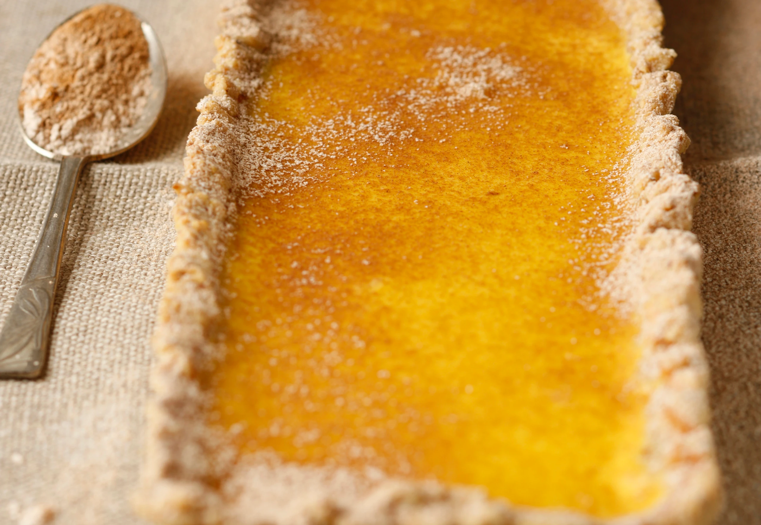 Rohr auf 180°C vorheizen. Rechteckige Tarteform (10 x 40 cm) vorbereiten. Für den Teig Butter in kleine Stücke schneiden, mit Haselnüssen, Mehlen, Zucker und 1/2 TL Salz zerbröseln. Ei zugeben und alles rasch zu einem glatten Teig verarbeiten. Teig auf einer leicht bemehlten Arbeitsfläche ausrollen, Form damit auskleiden und für ca. 20 Minuten kalt stellen.