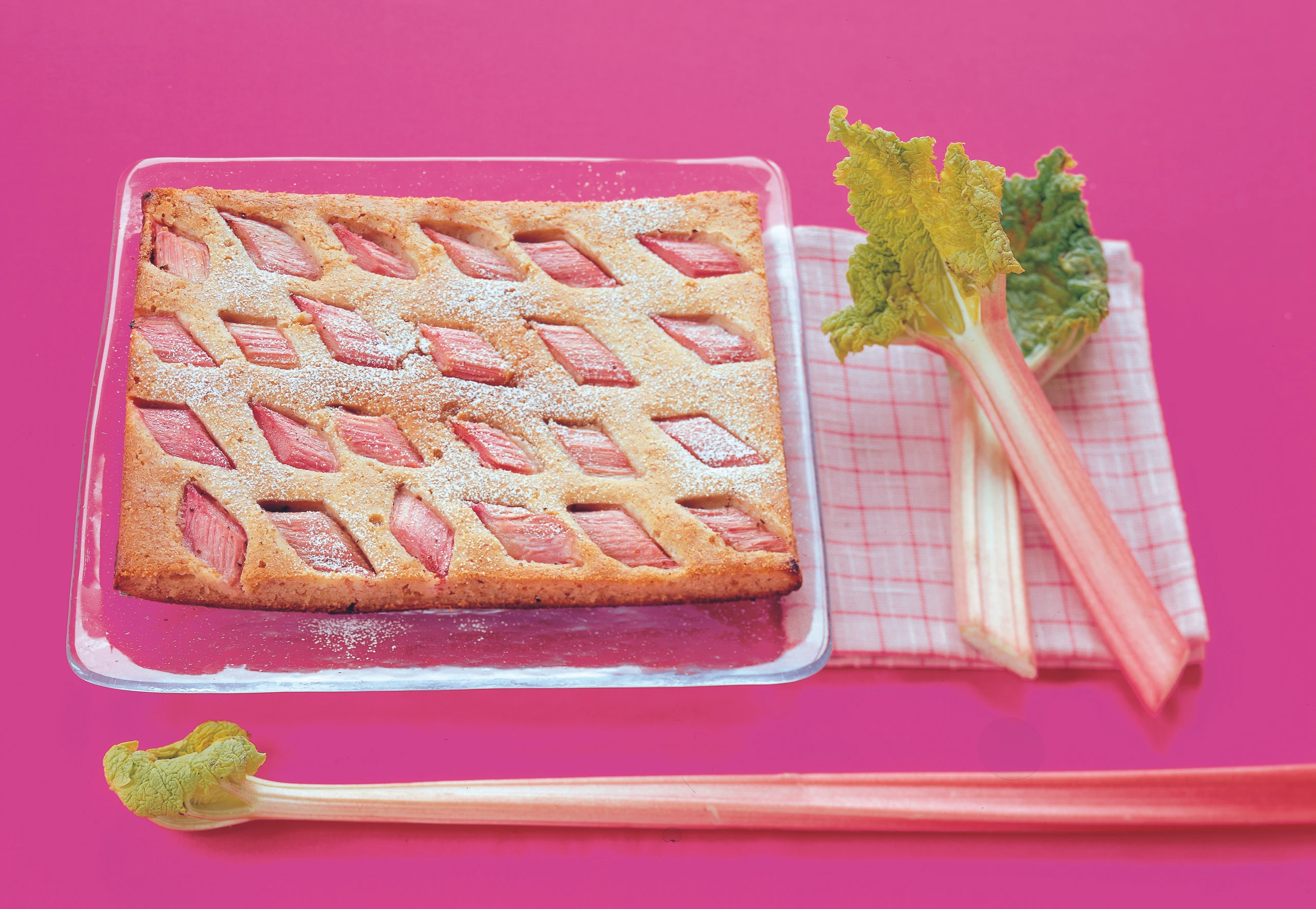 - Eier nach und nach zugeben und gut schaumig rühren. Mehl untermischen, Mandeln und Honigmilch einrühren. Masse auf einer Hälfte des Backbleches gleichmäßig verstreichen und mit den Rhabarberstücken belegen. Kuchen im Rohr (untere Schiene) ca. 35 Minuten backen. Kuchen aus dem Rohr nehmen, abkühlen lassen und mit Stauzucker bestreut servieren.