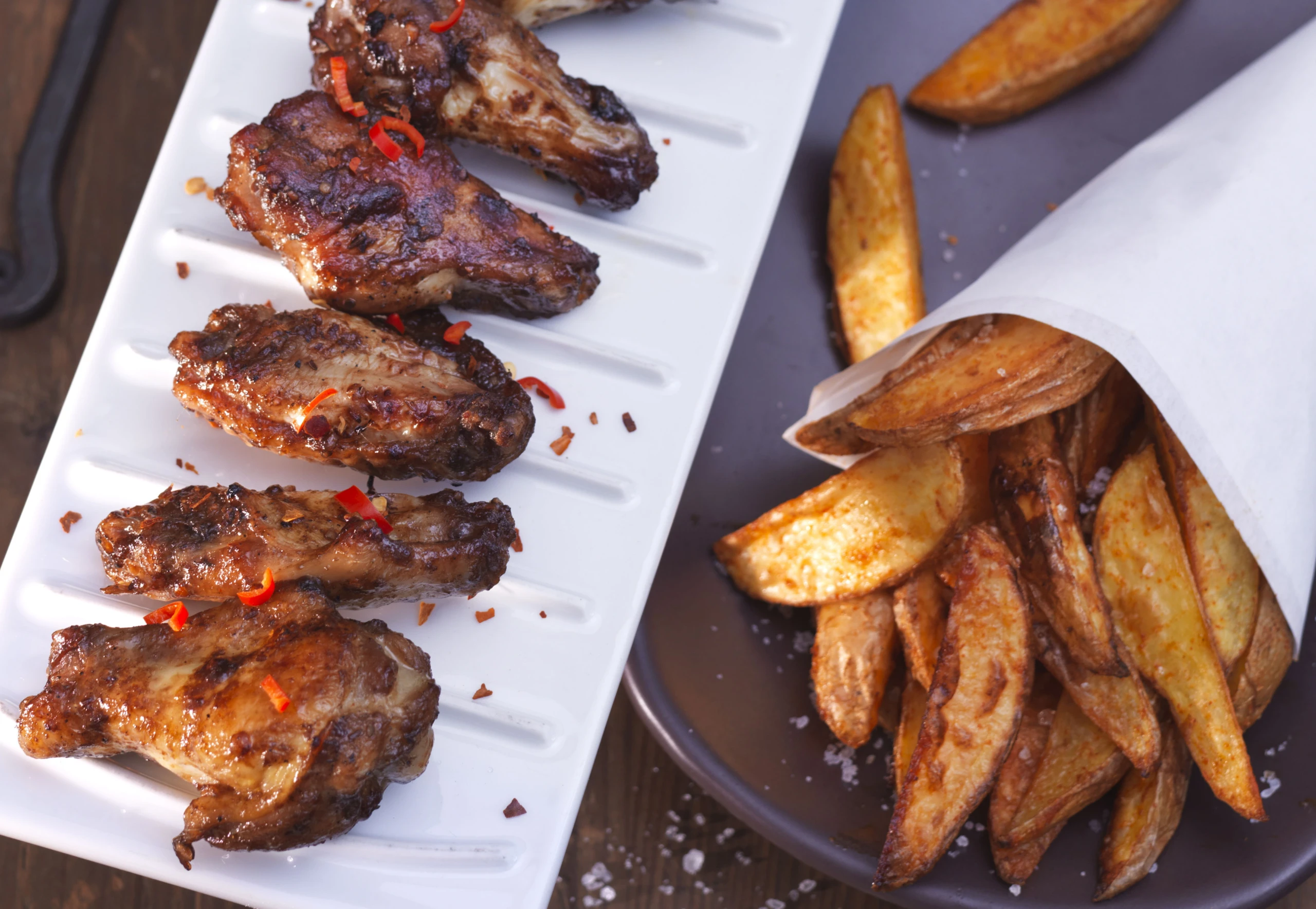 Hot Cajun Chicken Wings mit Wedges und Dip