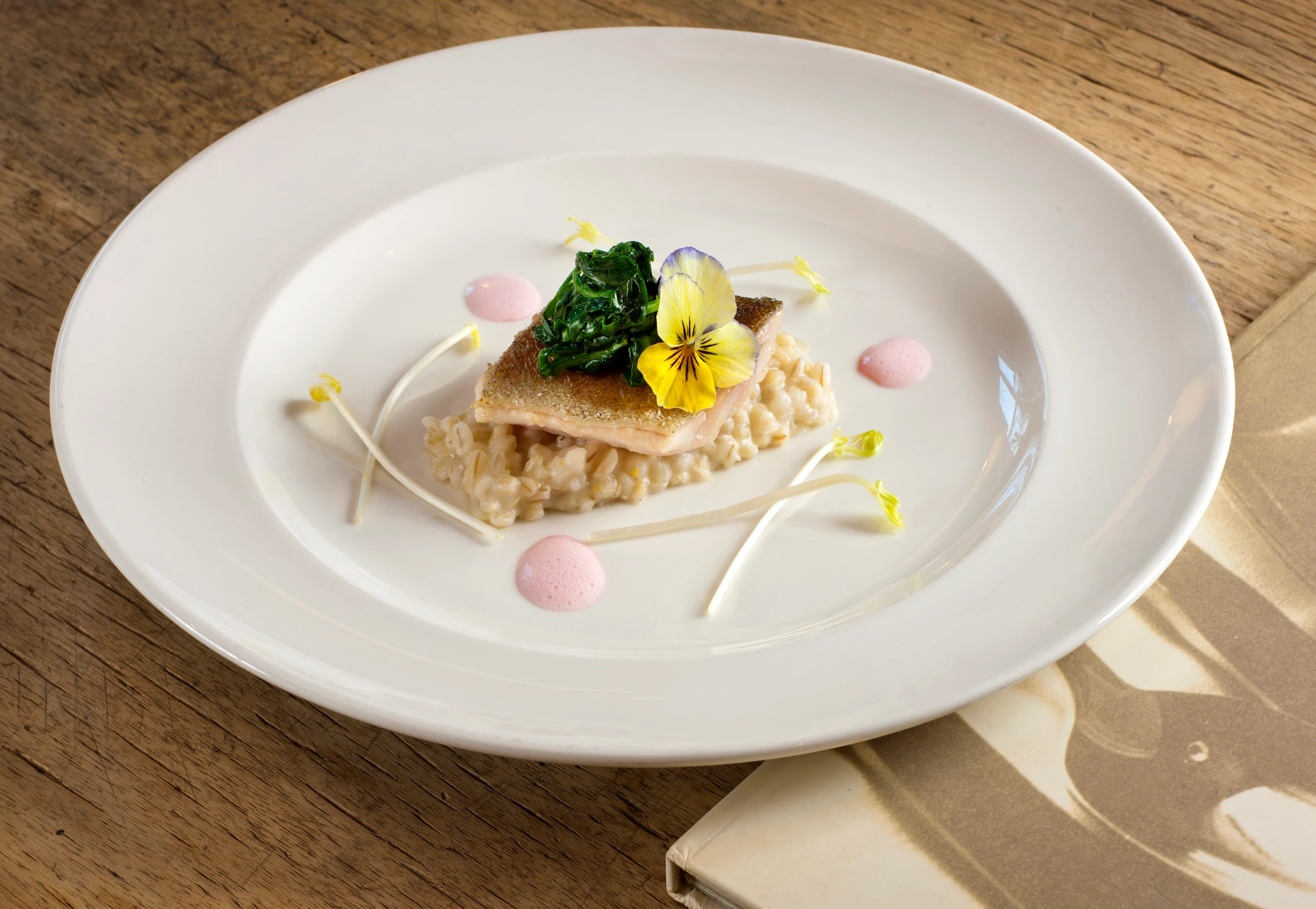 Huchenfilet auf Rollgerste mit Brennnesseln