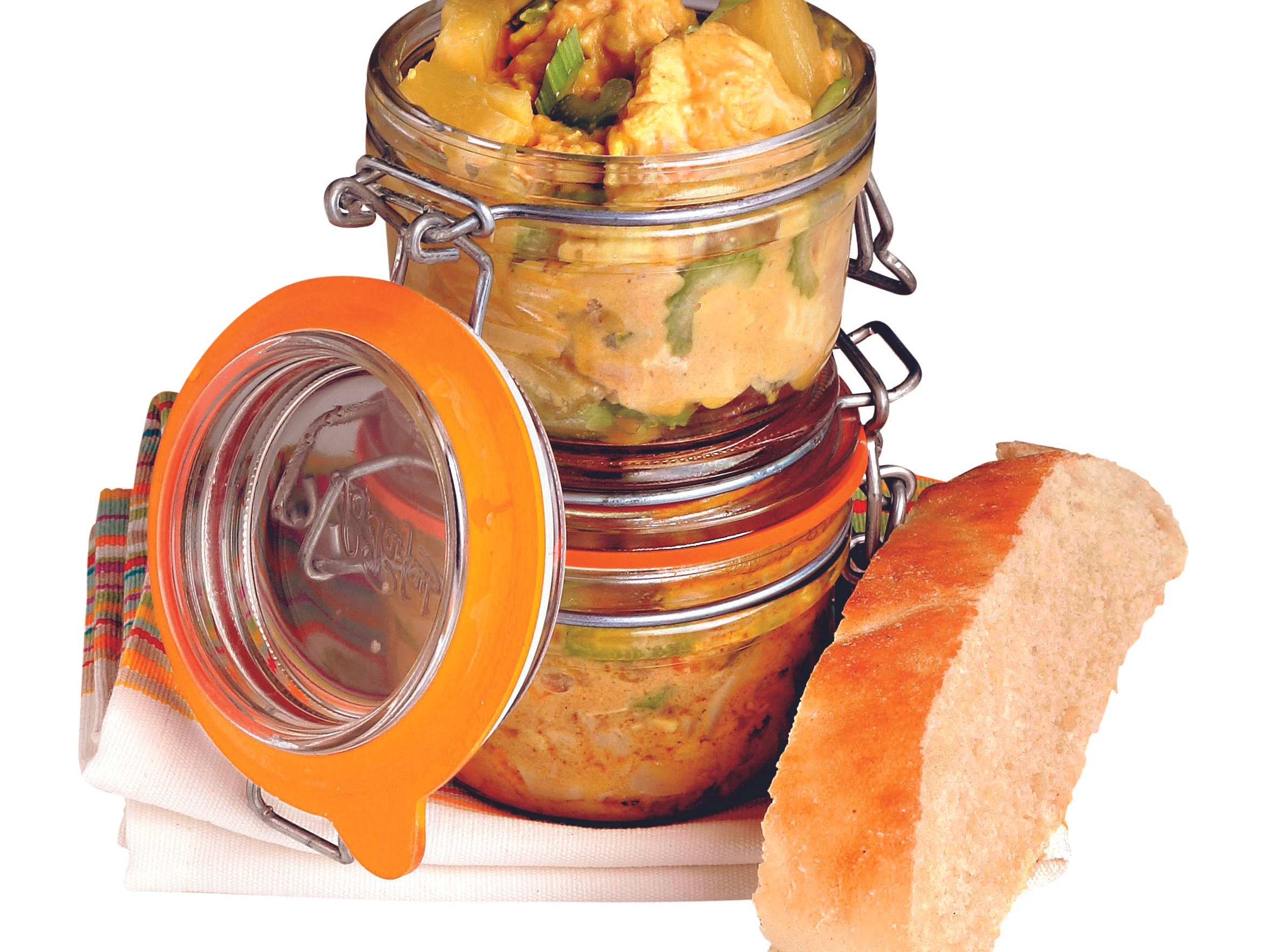 Hühnerstücke herausnehmen und überkühlen lassen. Fleisch von den Knochen lösen und nicht zu fein schneiden. Fleisch und Ananas klein schneiden, in die Currysauce geben, durchmischen und abschmecken. Aufstrich in Einmachgläser füllen. Dazu passt Weißbrot.