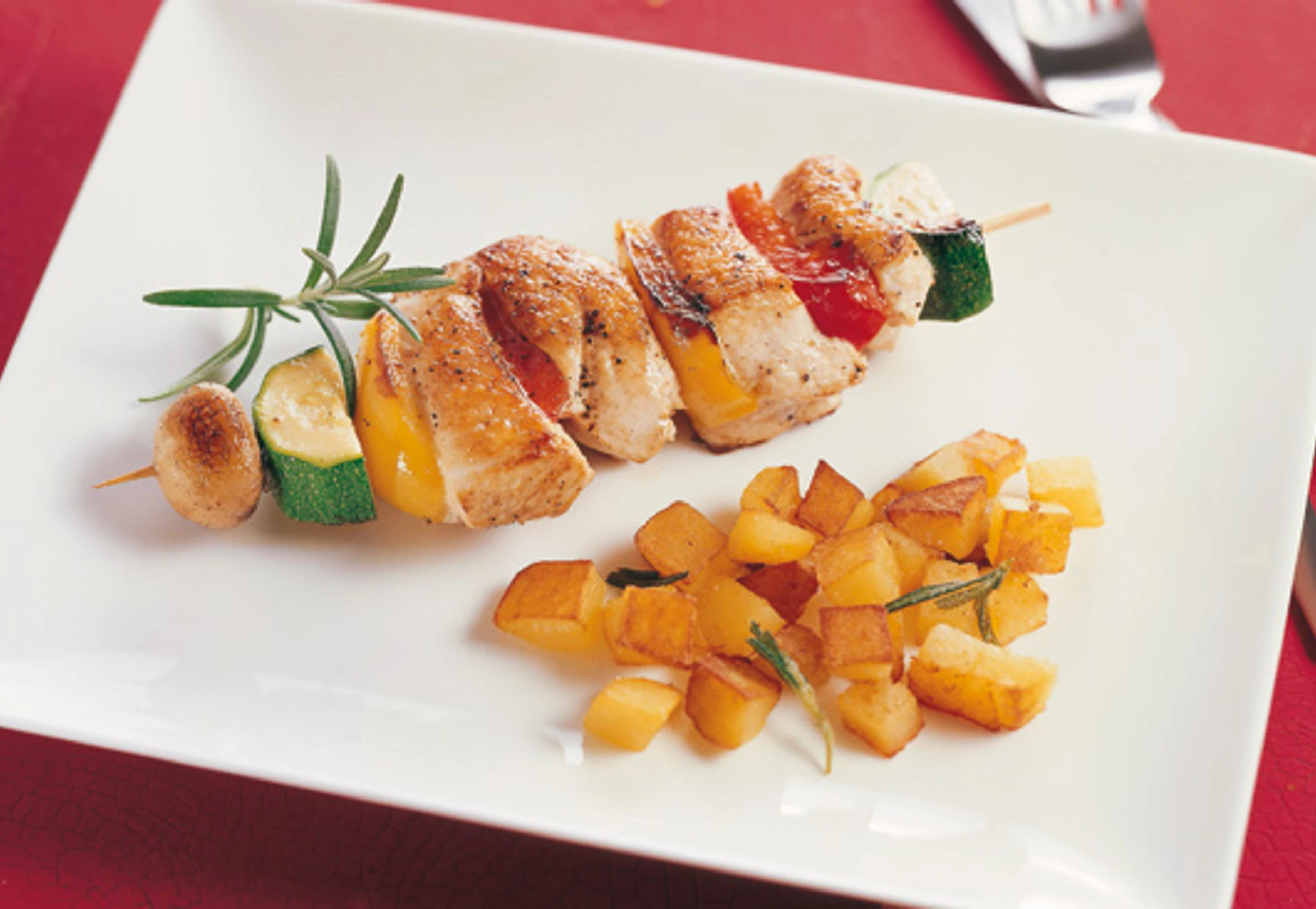Hühner-Gemüsespieß mit Rosmarin-Erdäpfeln