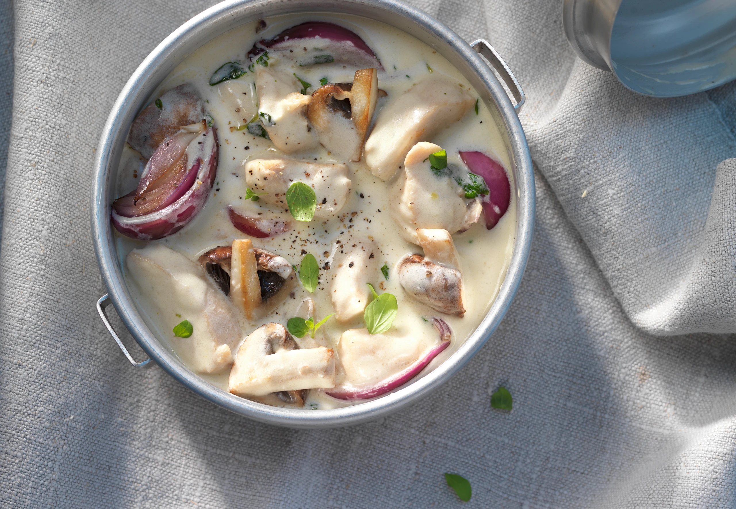 Wein-Tipp: Ausgewogener, voller, bisquit-duftender Chardonnay aus Neuseeland oder kräftiger Wiener Chardonnay begleitet mit pilzigen Aromen.