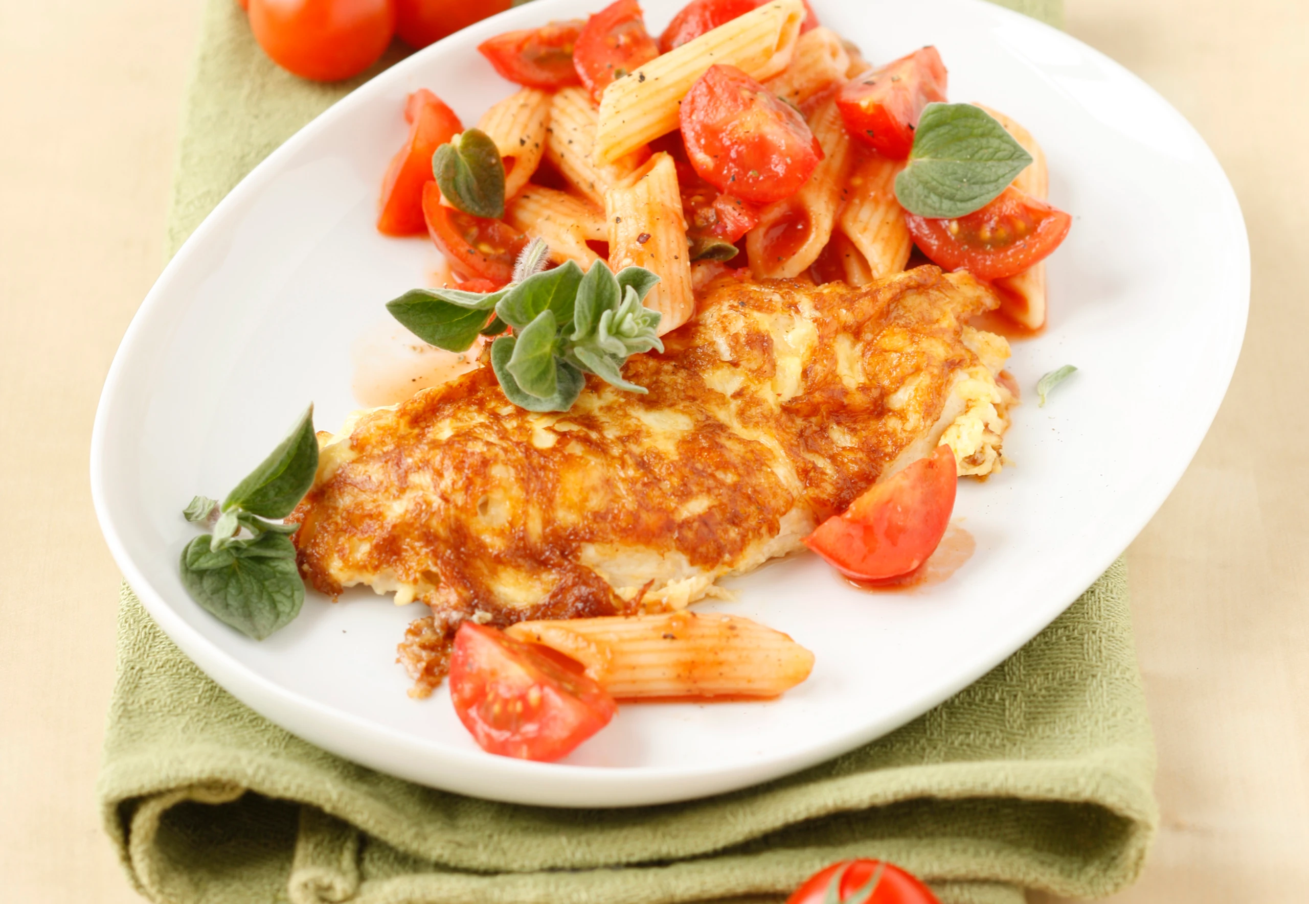 Schnitzel herausheben, auf Küchenpapier abtropfen lassen und mit der Pasta anrichten.