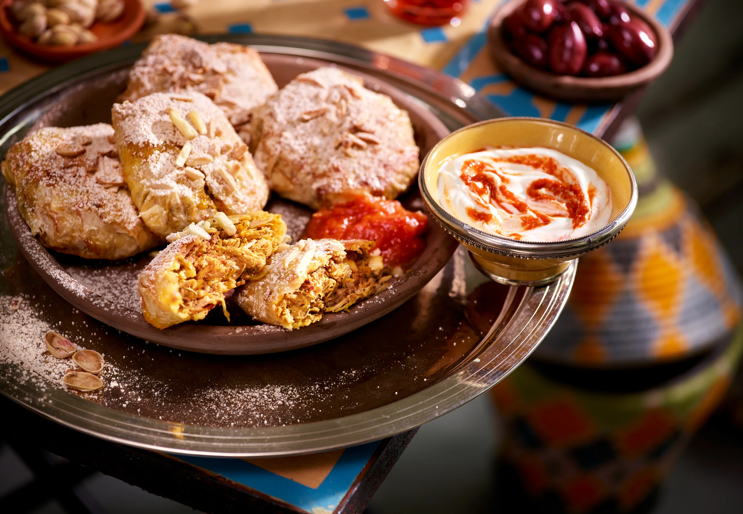 Pastillas herausnehmen, mit Staubzucker und Zimt bestreuen. Dazu passt Joghurt mit Harissa.