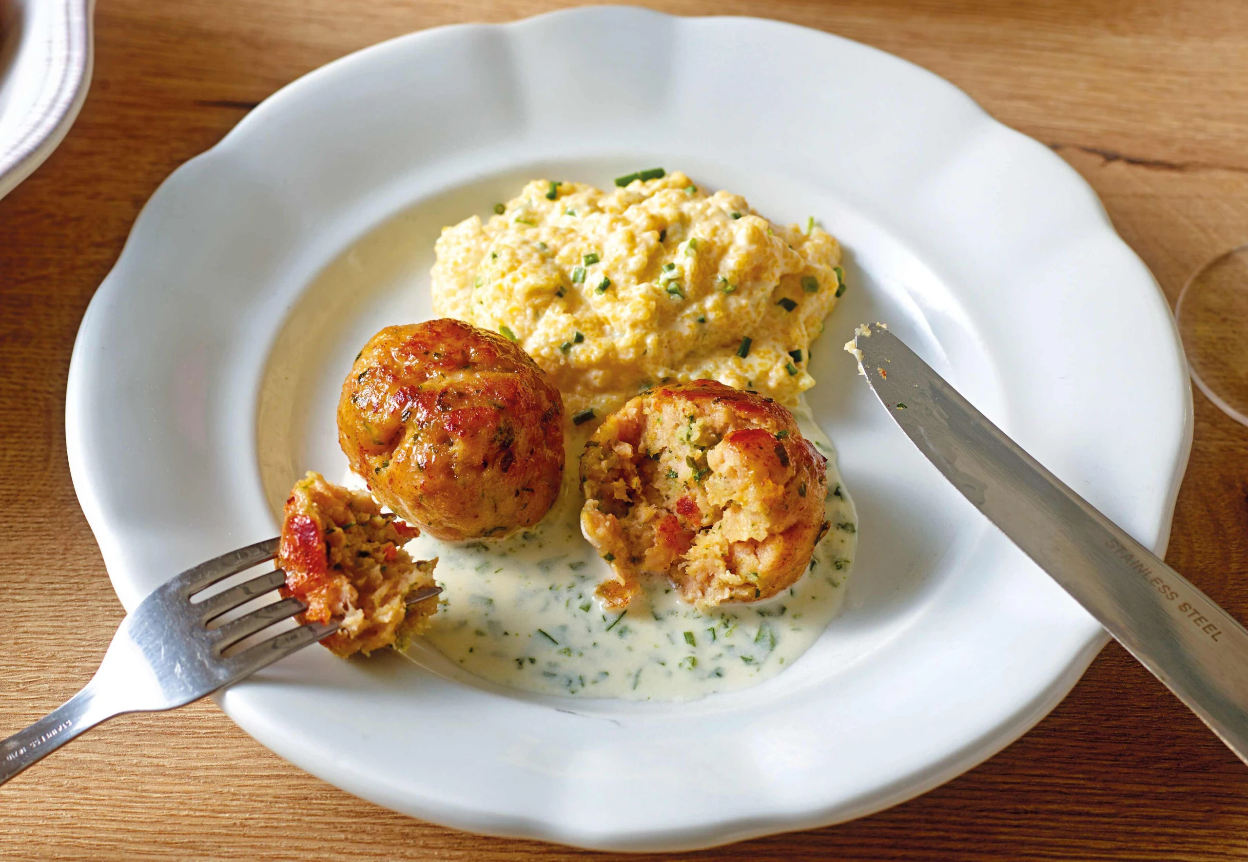 Hühnerbällchen mit Ricotta-Polenta