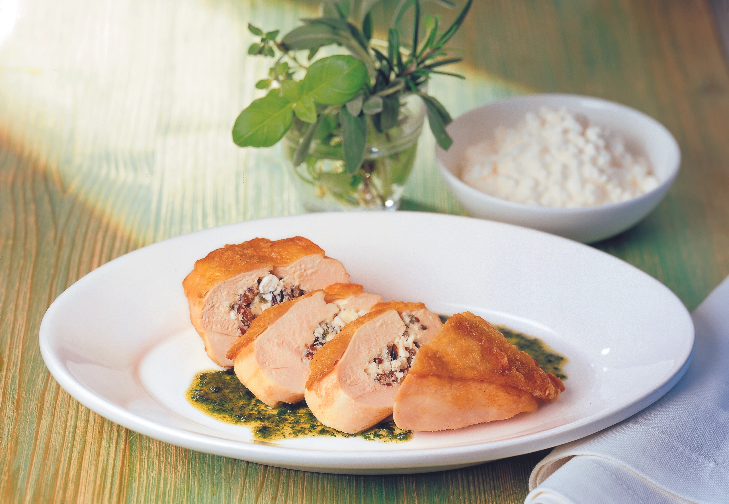 Hühnerbrust mit Wildreis-Frischkäsefülle und Kräuterpesto