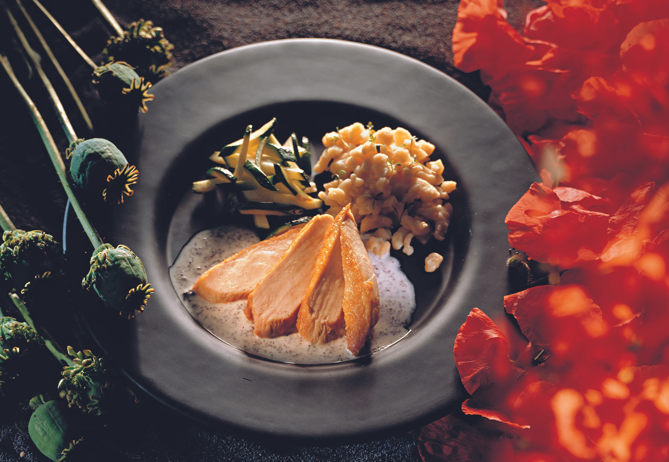 Hühnerbrust mit Mohn-Weinsauce