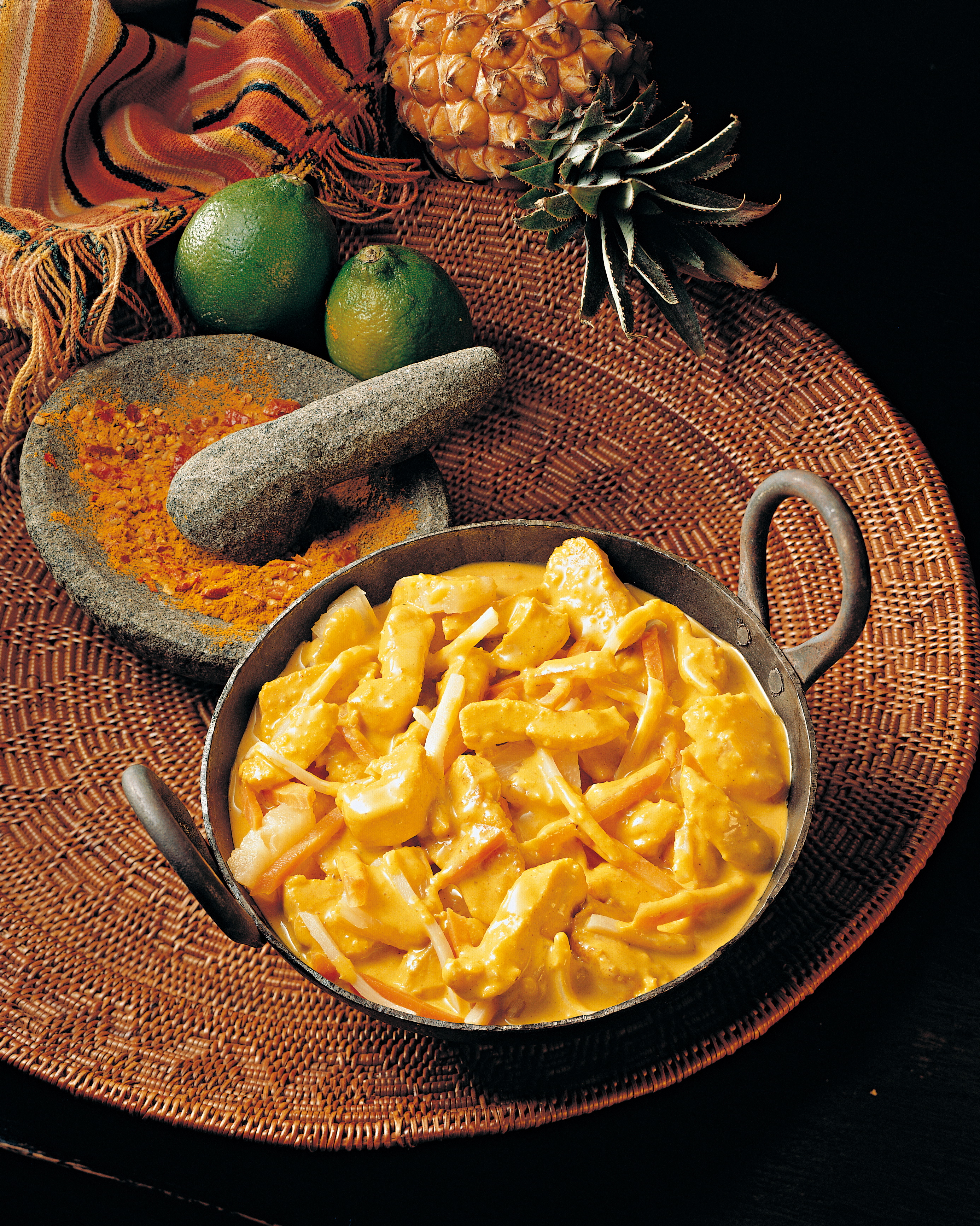 Hühnercurry mit Ananas und Karottenstreifen