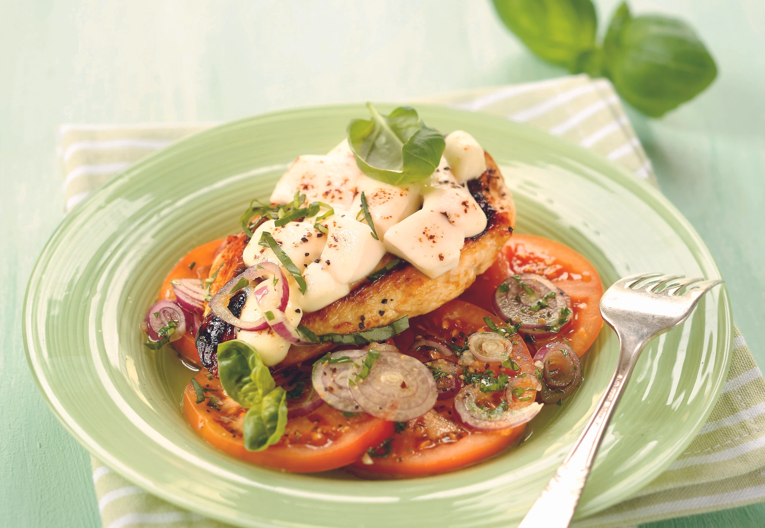 Hühnerfilet mit Mozzarella auf Paradeissalat