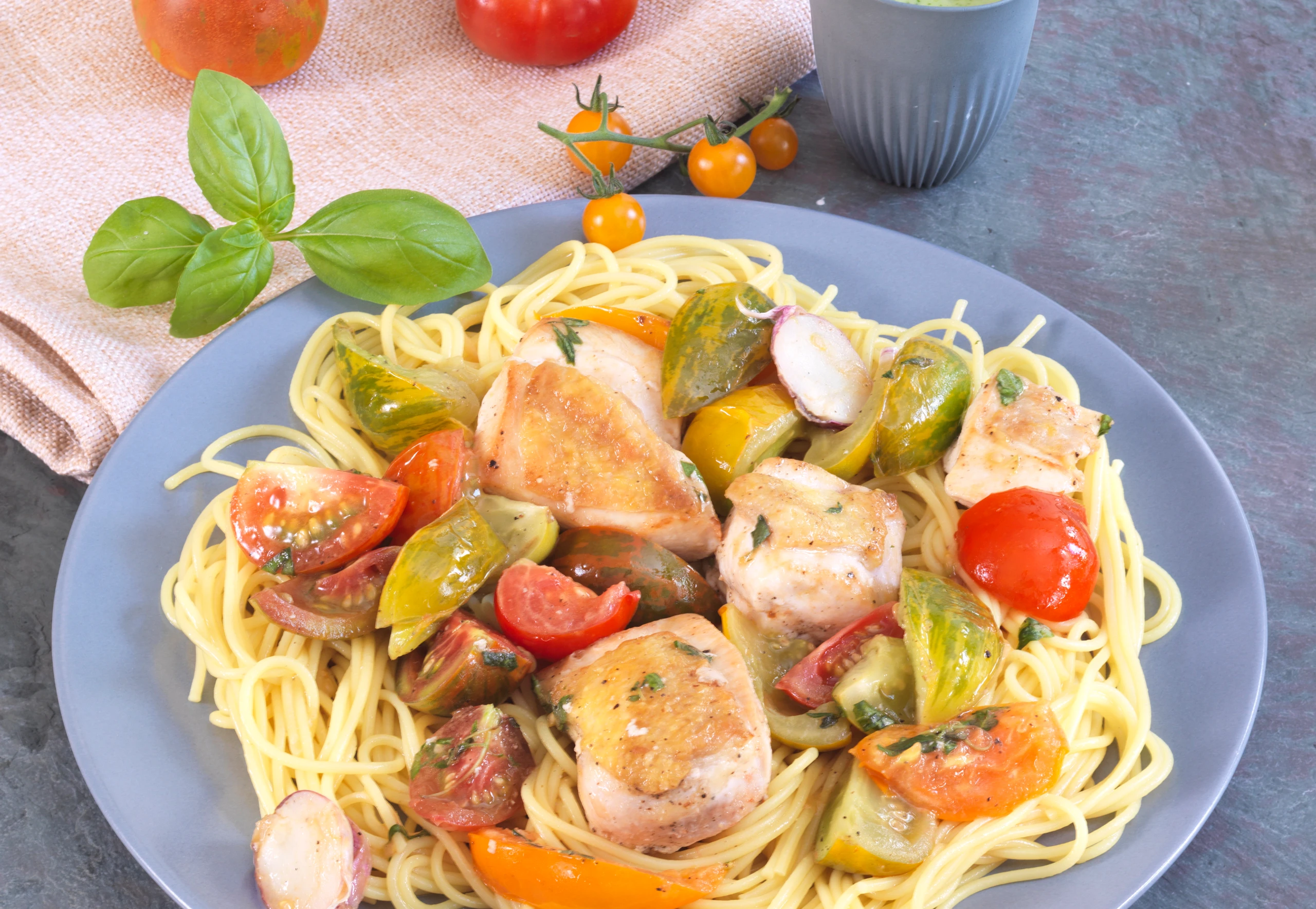 Hühnerfilet-Pfanne mit Pesto-Rahmsauce