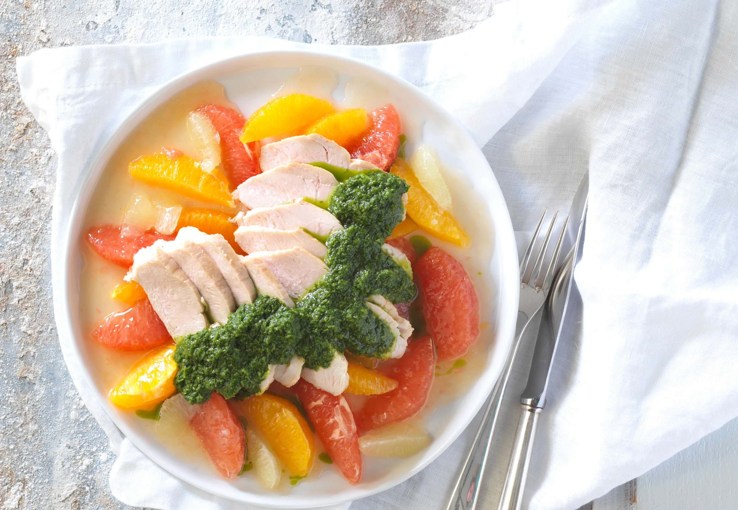 Hühnerfilet mit Salsa verde und Zitrusfrüchten