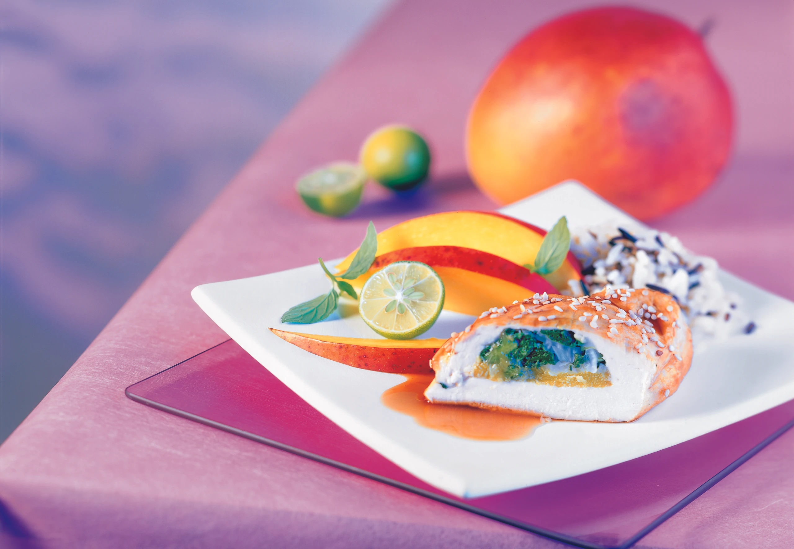 Hühnerfilets mit Spinat-Mangofülle und Sesam