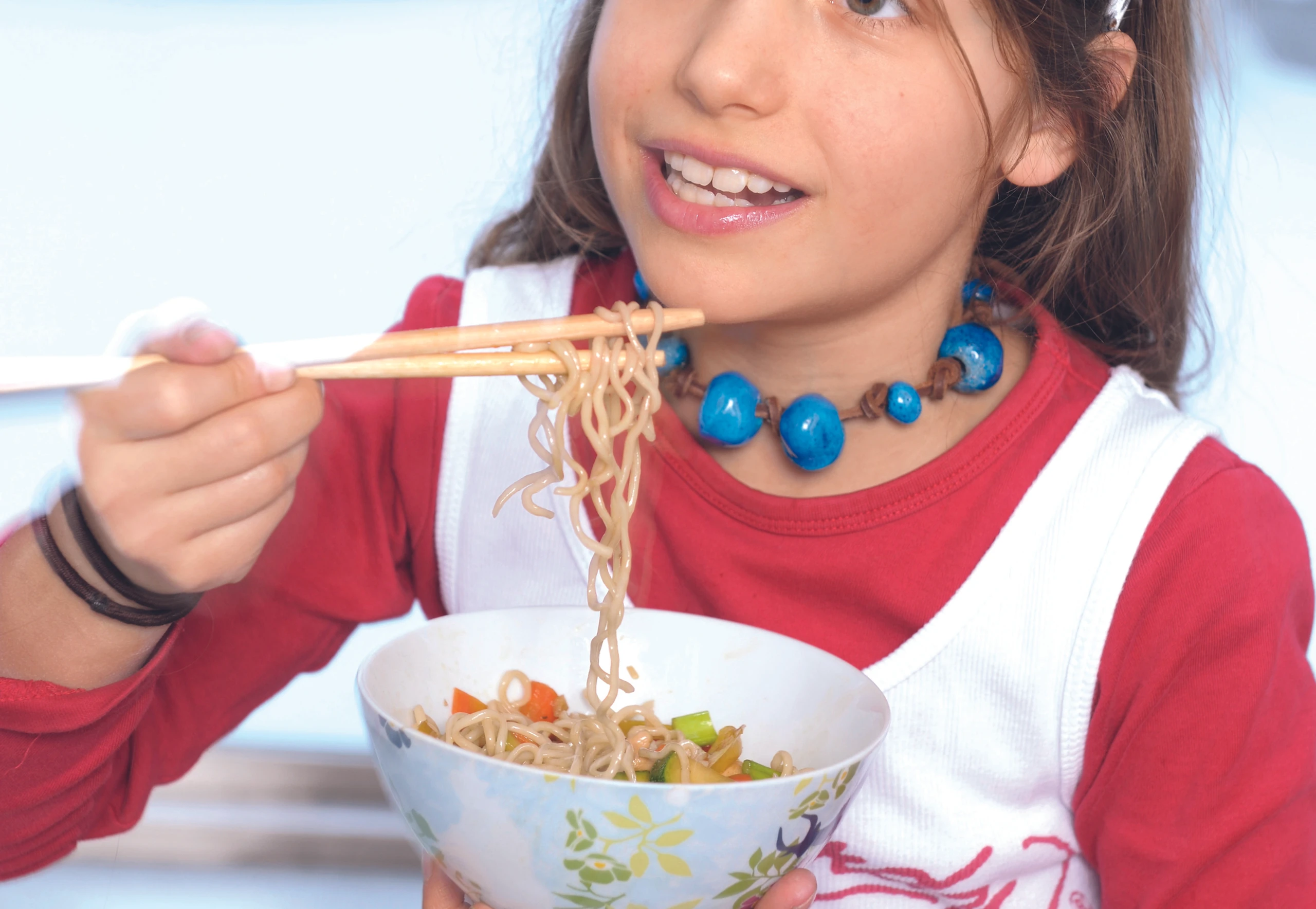 Im Wok 1 EL Öl erhitzen. Karotte, Paprika, Ingwer und Knoblauch zugeben. Alles unter Rühren 2 Minuten braten. Zucchini zugeben, 1 Minute unter Rühren braten.