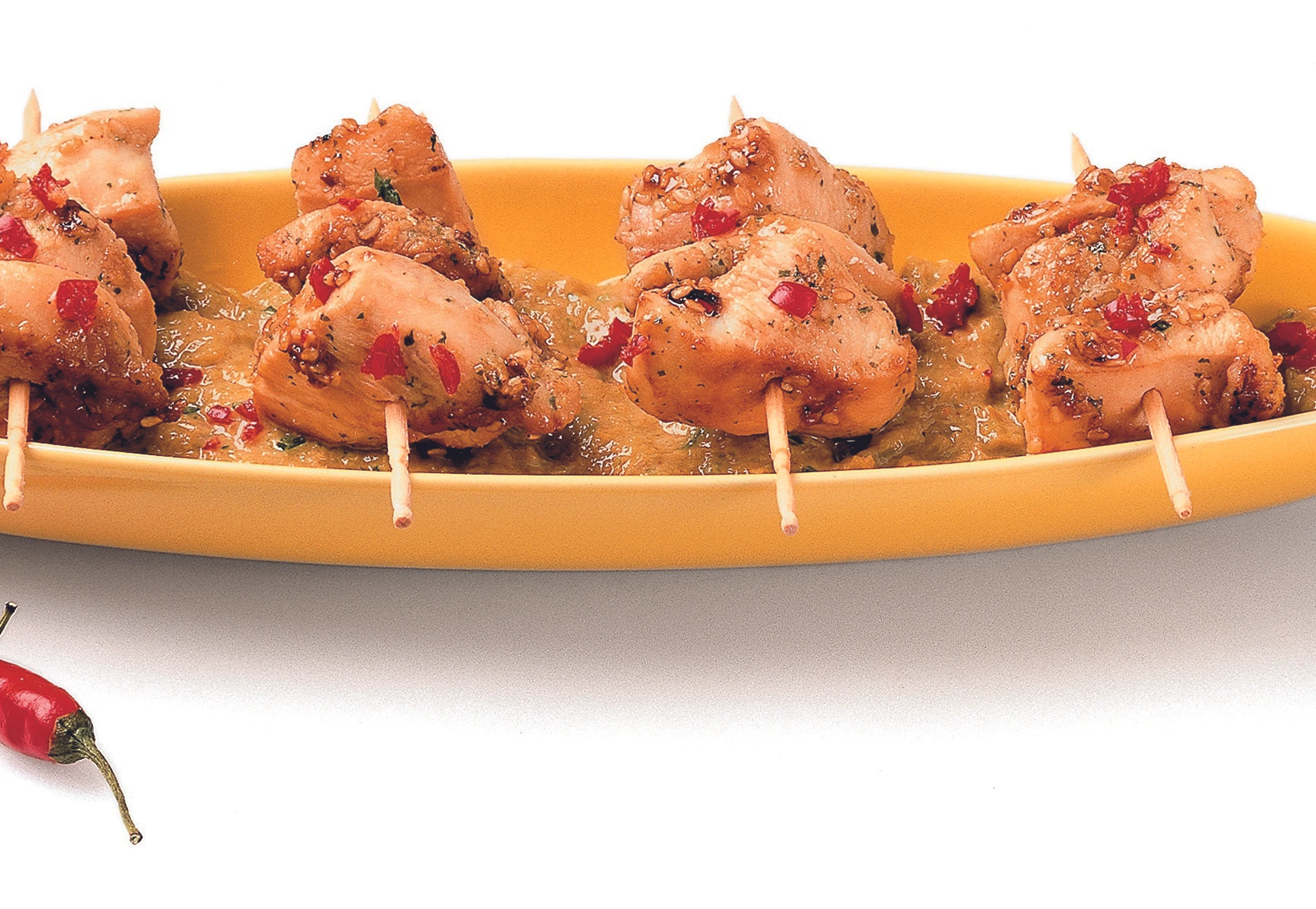 Asiatisch marinierte Hühnerspieße mit Erdnusssauce