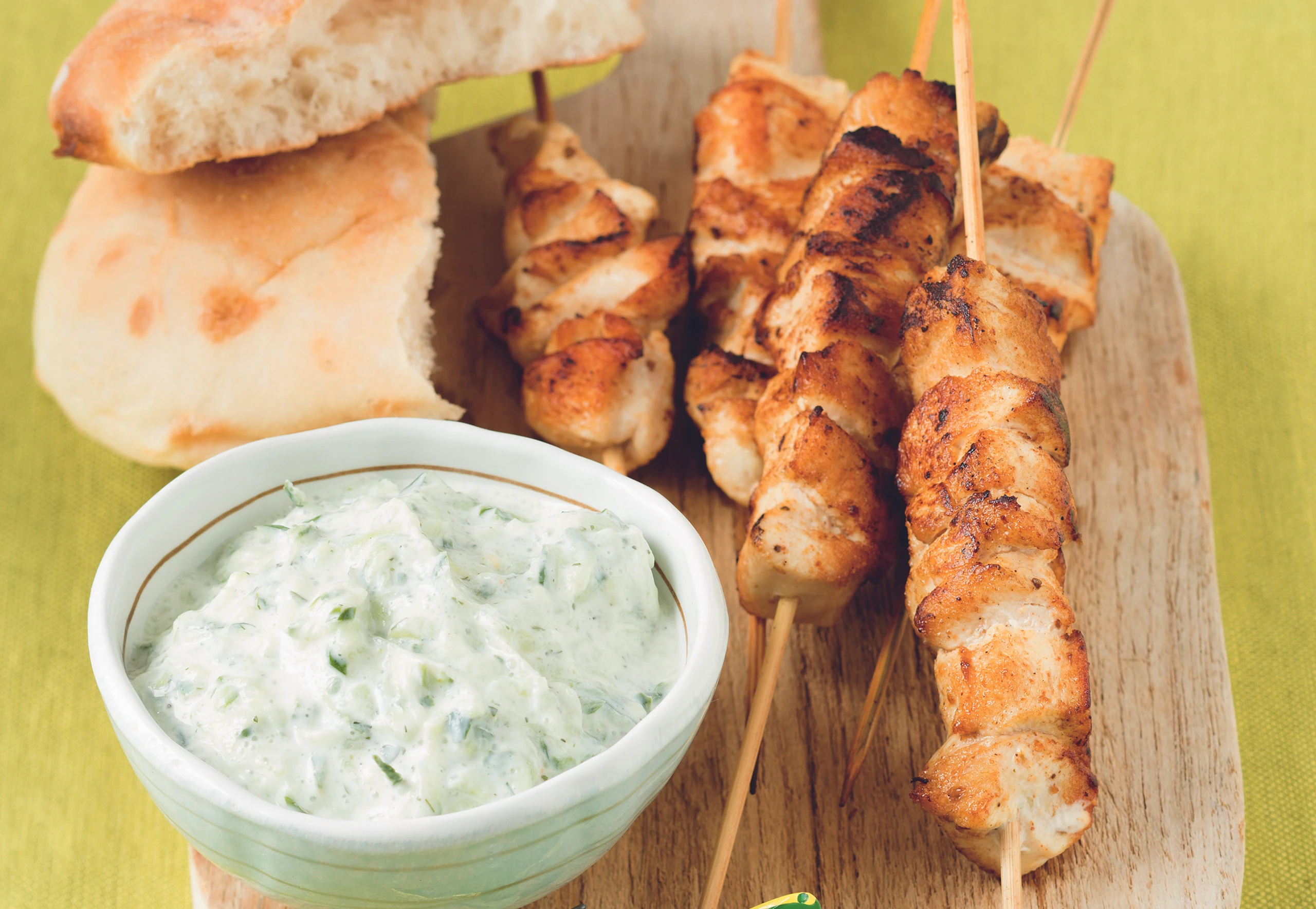 - Fleisch auf Spieße stecken. Spieße in 2 EL Öl rundum scharf anbraten, Hitze reduzieren und die Spieße fertig braten. Spieße mit Tsatsiki servieren. Dazu passt Fladenbrot.