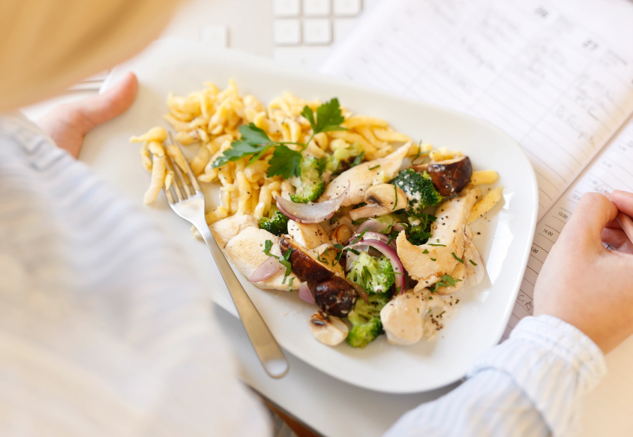 Hühnerstreifen mit Pilzen, Brokkoli und Spätzle