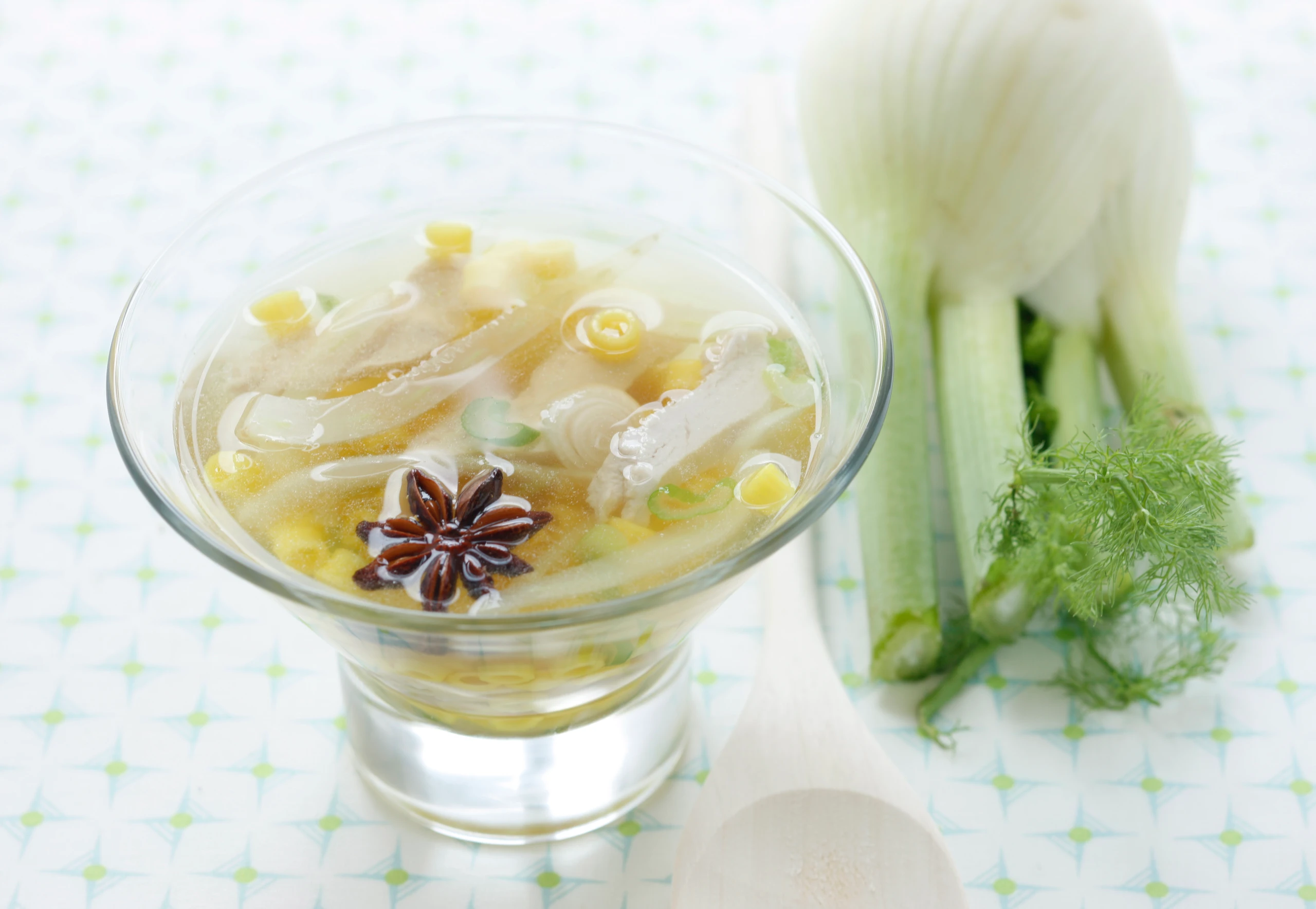 Hühnersuppe mit Sternanis, Gemüse und Maisnudeln