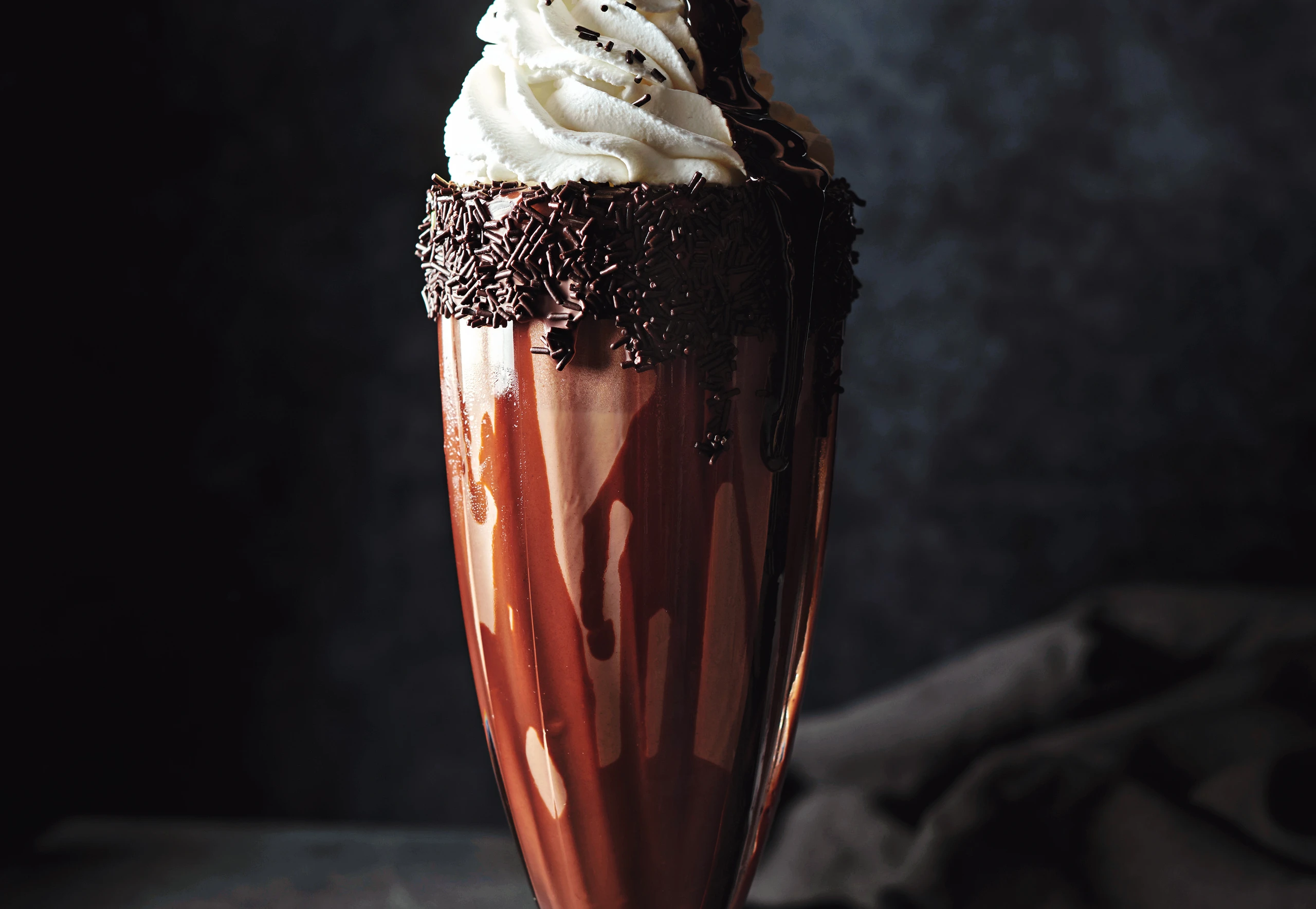 Obers cremig schlagen und in einen Dressiersack mit Sterntülle füllen. Chocolate mit einem Obershäubchen und Schokostreuseln garnieren. Für einen extra Kick mit warmer Schokosauce (Rezept unten) beträufeln.