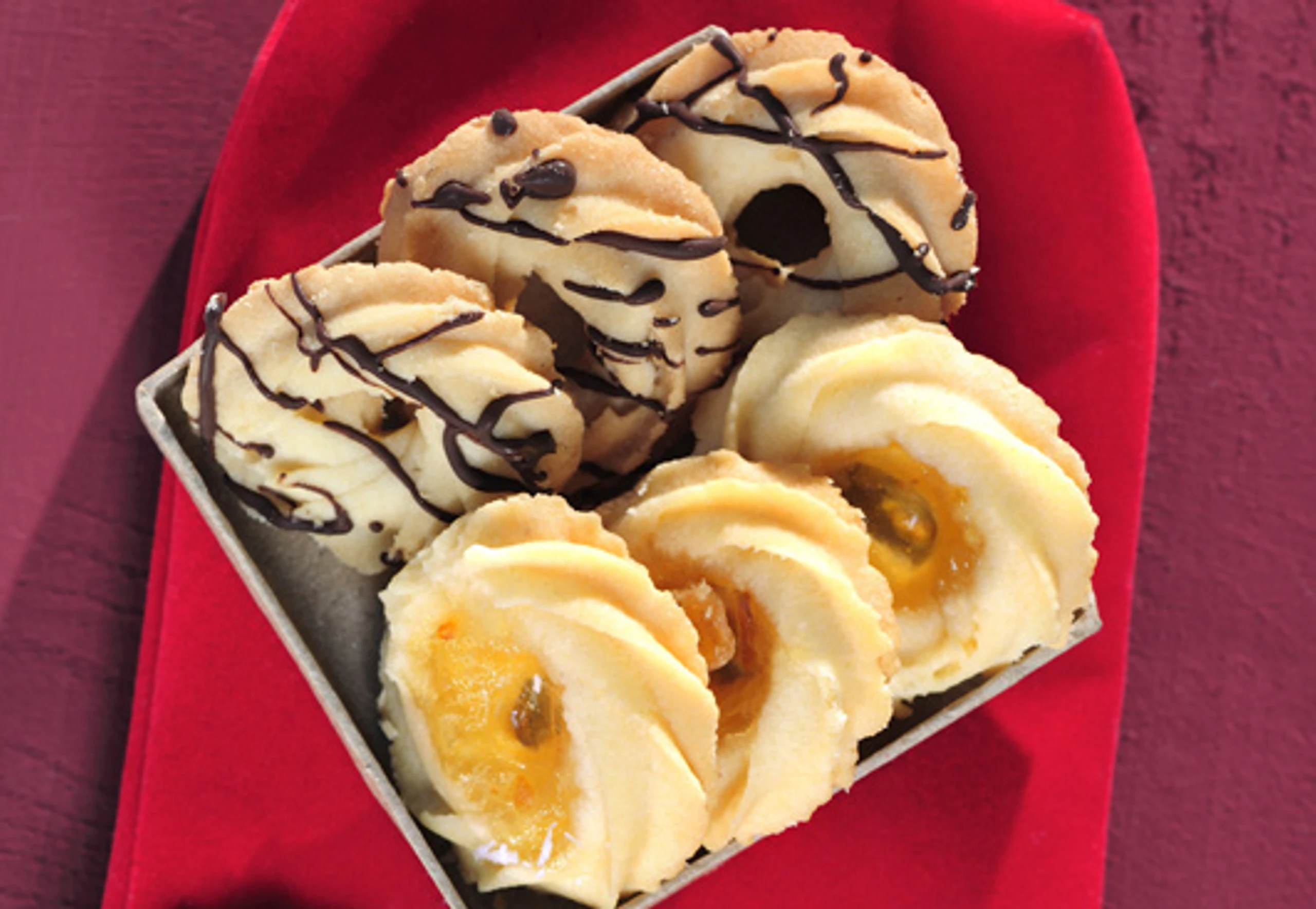 Masse in einen Dressiersack mit Sterntülle (8 mm) füllen und Ringerln auf die Bleche dressieren.
