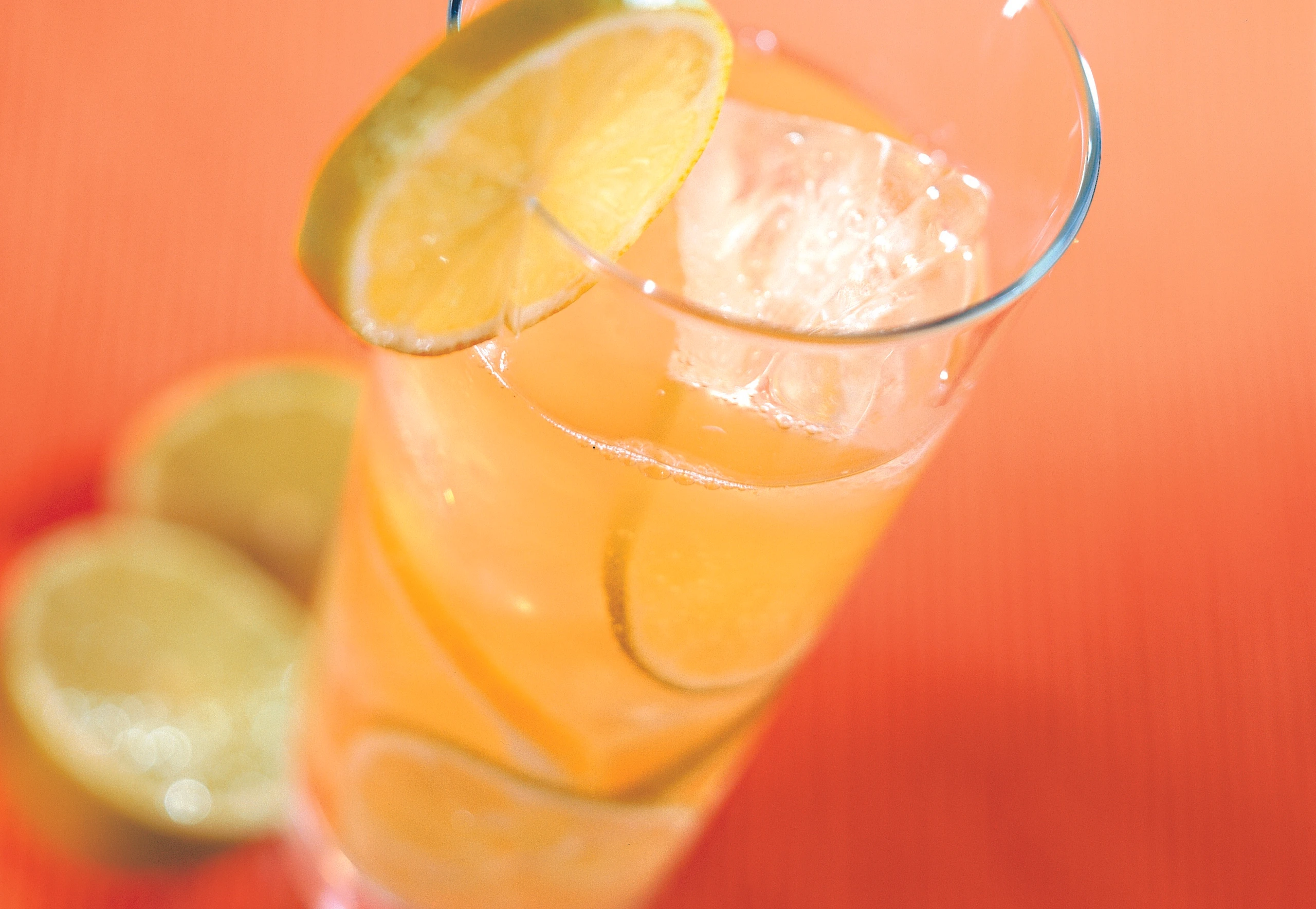 Zitrone und Limette in dünne Scheiben schneiden. Limonade abseihen. Mineralwasser, Zitronen- und Limettenscheiben zugeben, mit Eiswürfeln servieren.
