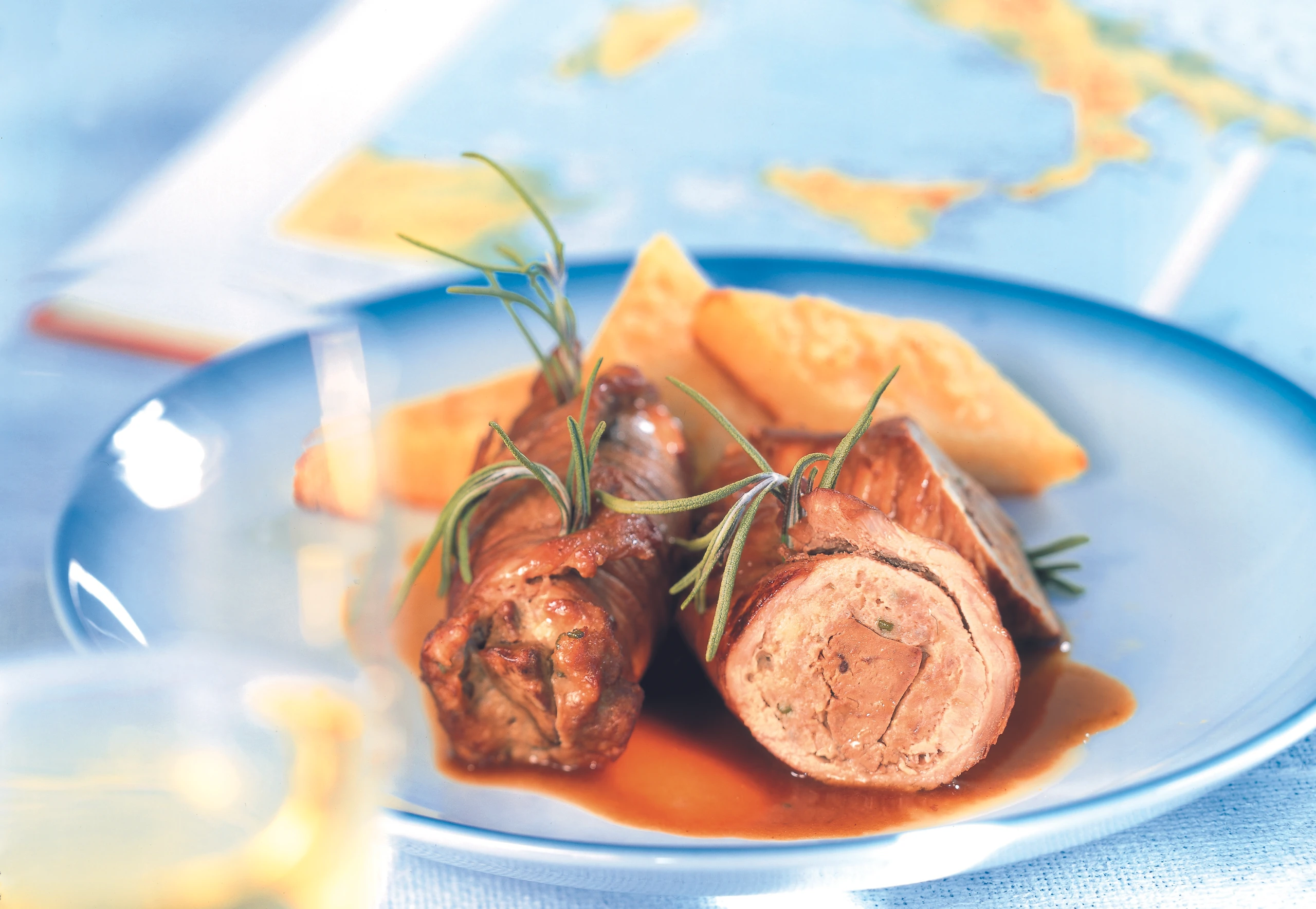 Involtini di vitello mit Gnocchi alla romana (Kalbfleischröllchen)