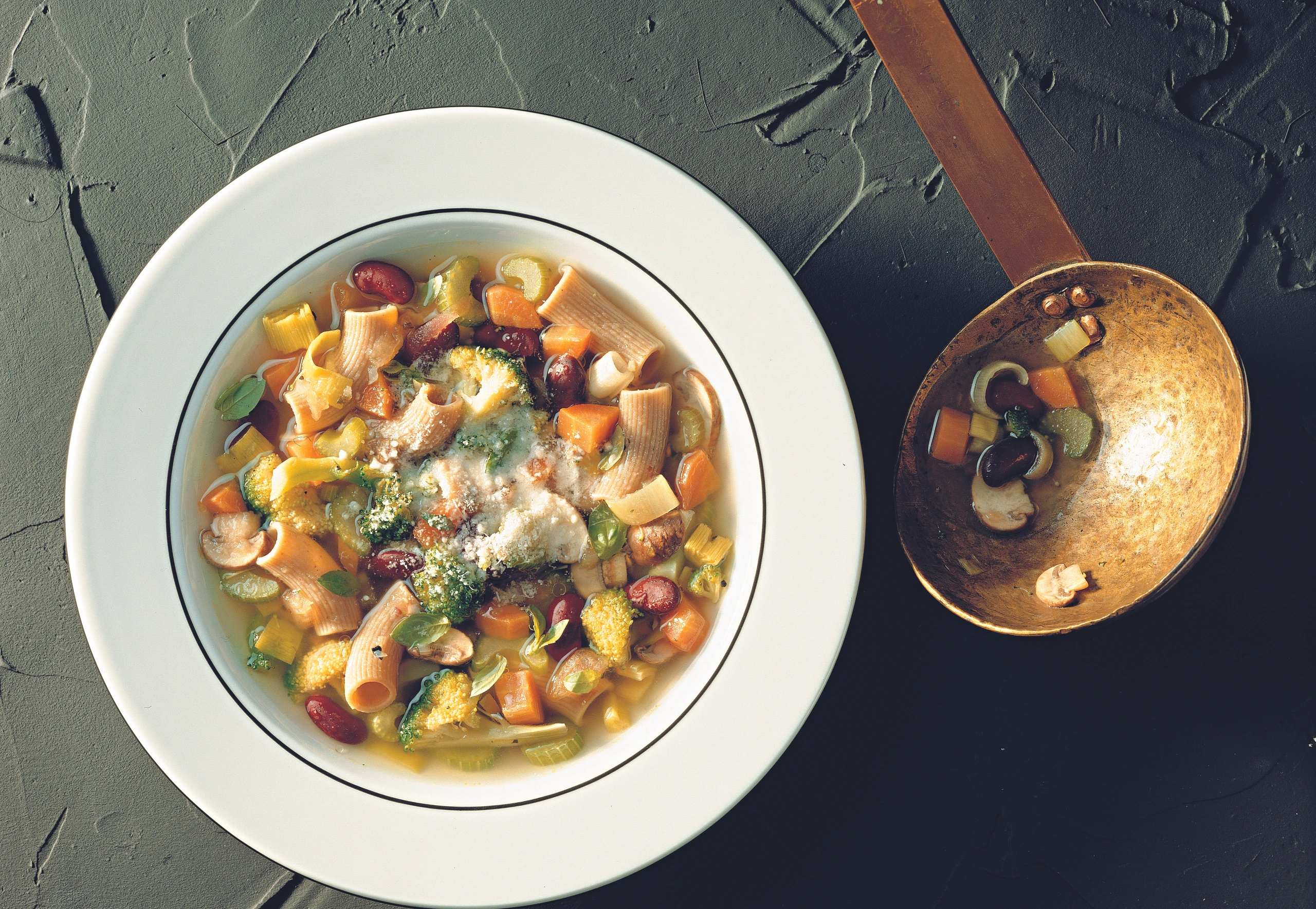 Suppe aufkochen. Karotten, Sellerie und Lauch zugeben und zugedeckt 5 Minuten köcheln. Champignons, Brokkoli und Paradeiser zugeben und 8 Minuten bissfest köcheln.