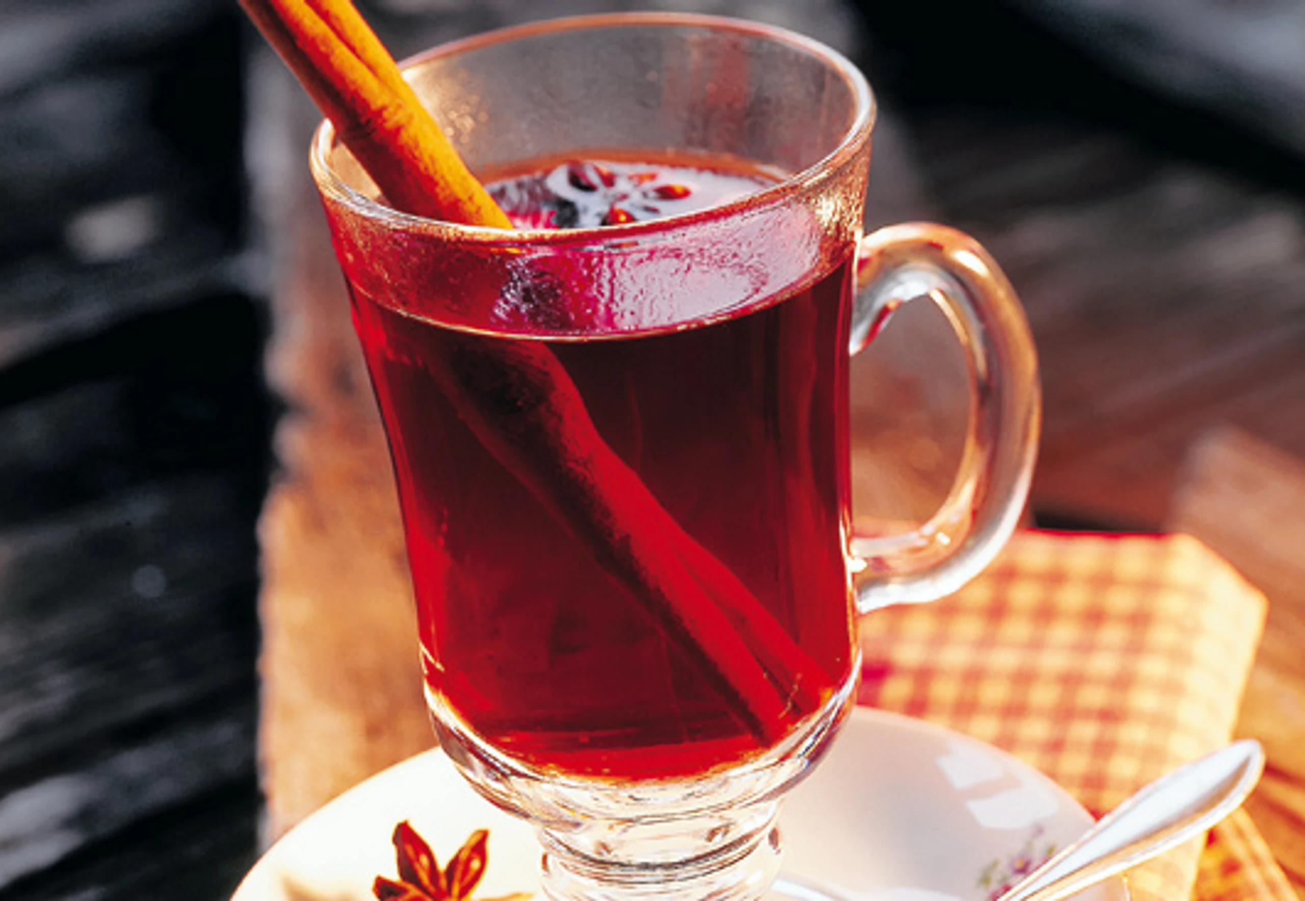- Tee und Wein mit Zimt und Sternanis getrennt erhitzen. Gläser vorwärmen, Obstler und Rum einfüllen.