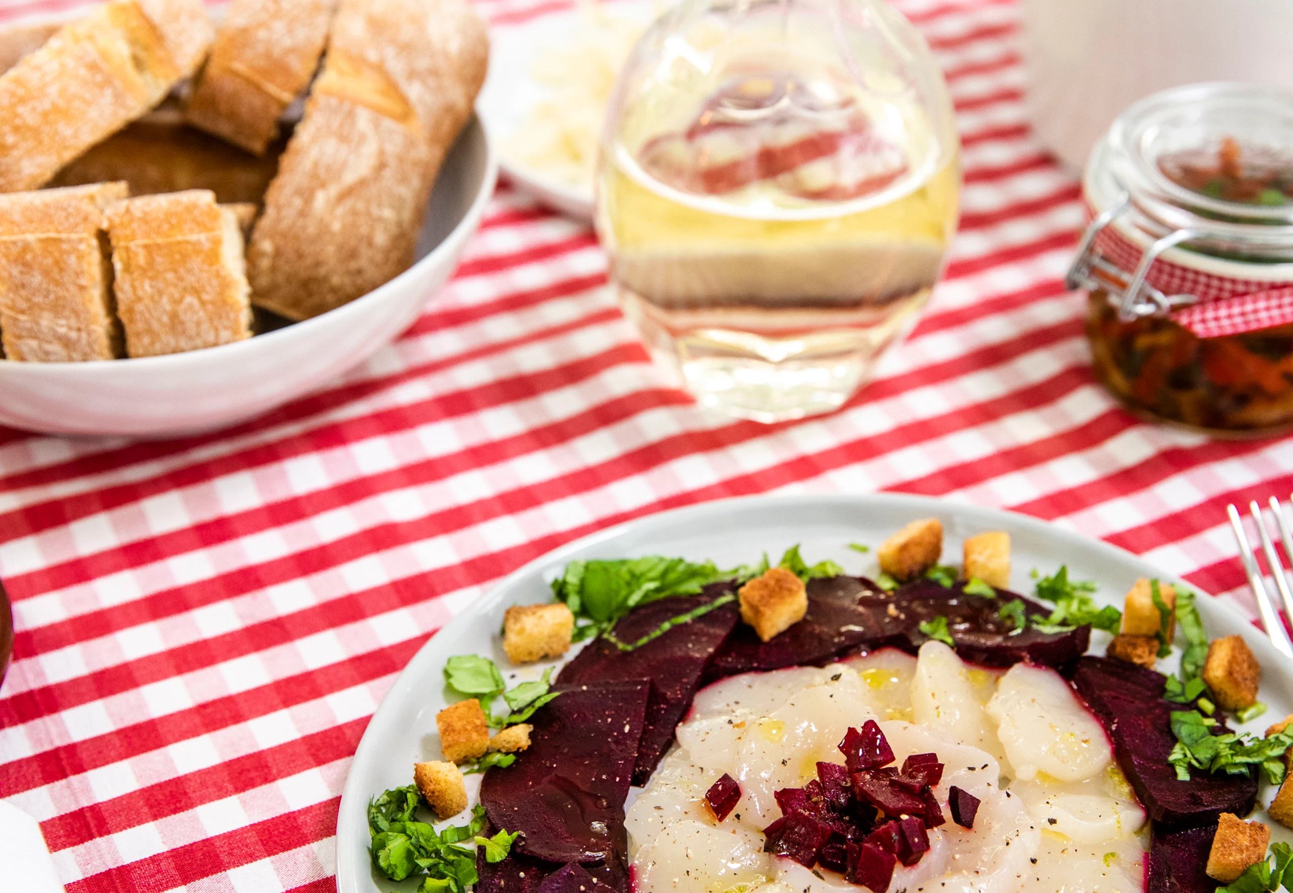 Jakobsmuschel-Carpaccio mit Roten Rüben